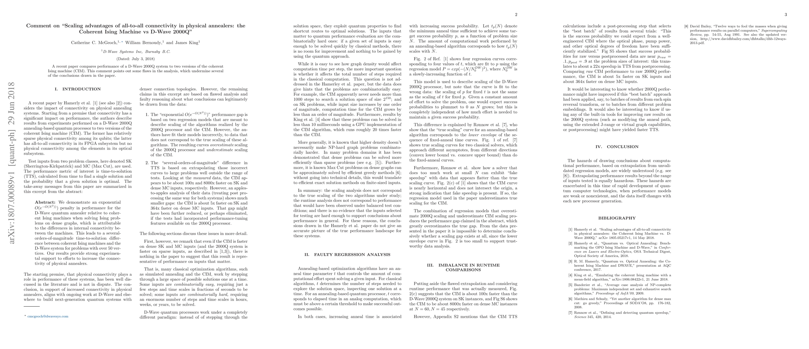 A recent paper [arXiv:1805.05217] compares performance of a D-Wave 2000Q system to two versions of the coherent Ising machine (CIM). This comment points out some flaws in the analysis, which undermine several of the conclusions drawn in the paper.