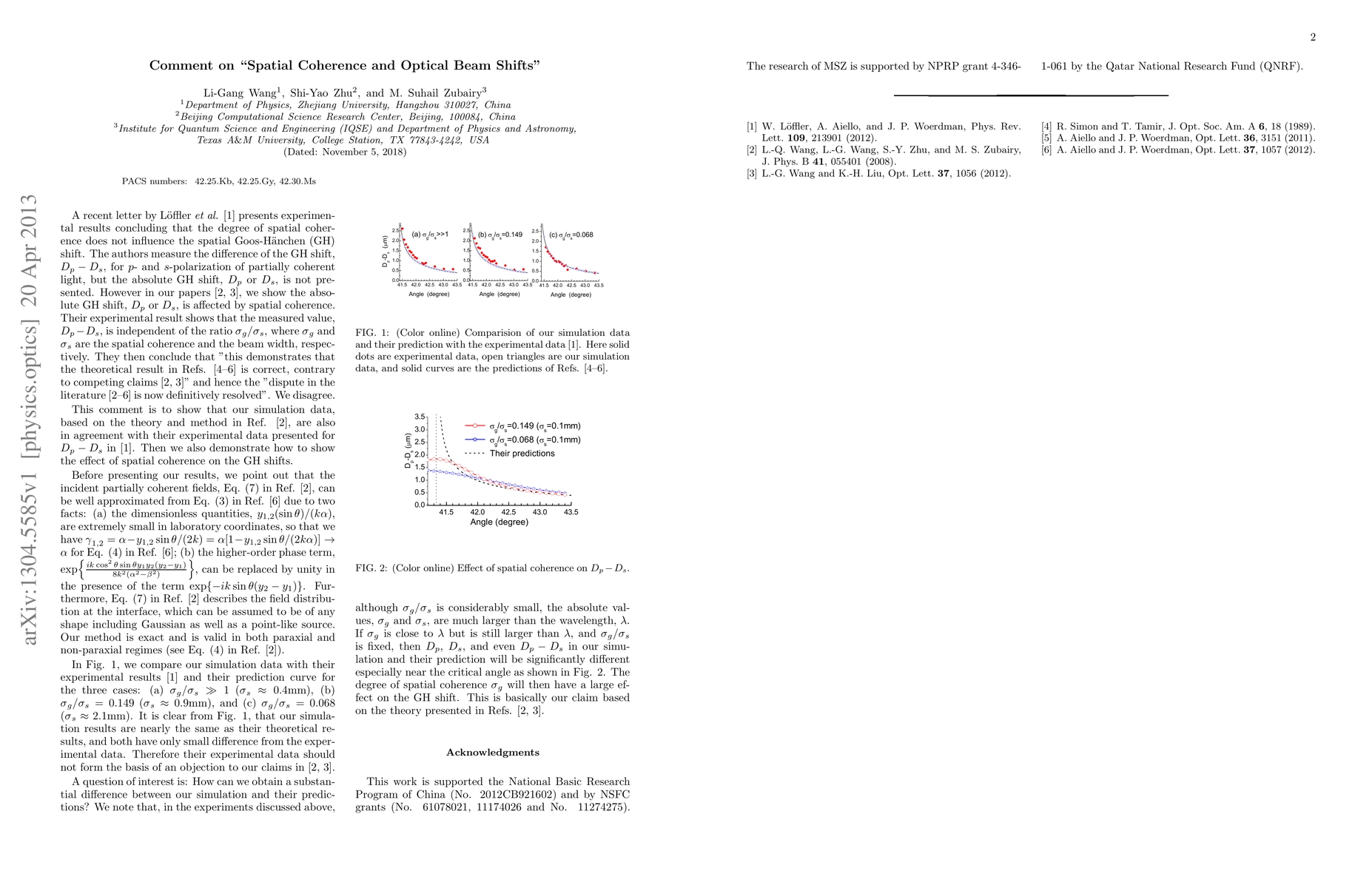 This comment validates the authors' simulation data against experimental results for $D_{p}-D_{s}$ and demonstrates the impact of spatial coherence on Goos-Hänchen shifts, disagreeing with the conclusions of a previous study.