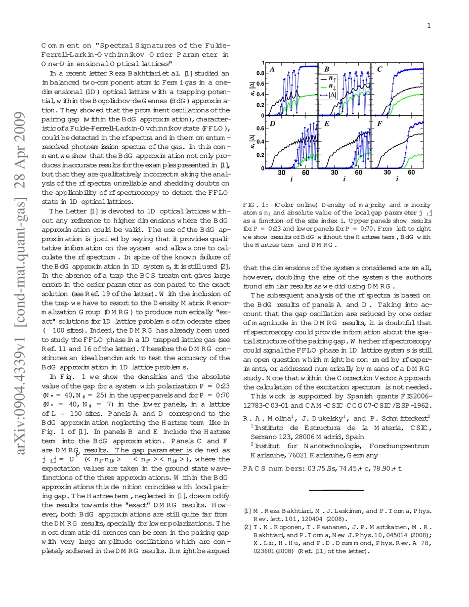Comment on "Spectral Signatures of the Fulde-Ferrell-Larkin-Ovchinnikov Order Parameter in One-Dimensional Optical lattices" M. Reza Bakhtiari, M. J. Leskinen, and P. T\"orm\"a, Phys. Rev. lett. {\bf 101}, 120404 (2008).