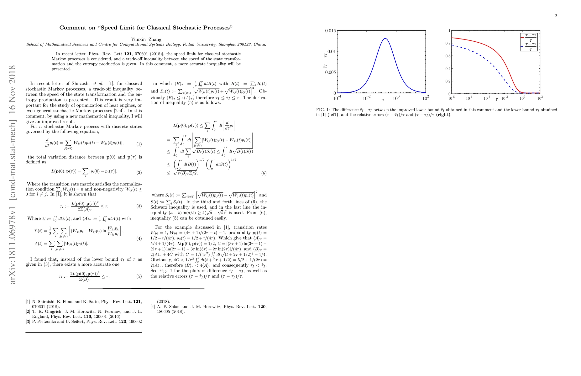 This comment refines the speed limit for classical stochastic Markov processes by providing a more precise inequality that better captures the trade-off between the rate of state transformation and entropy production.