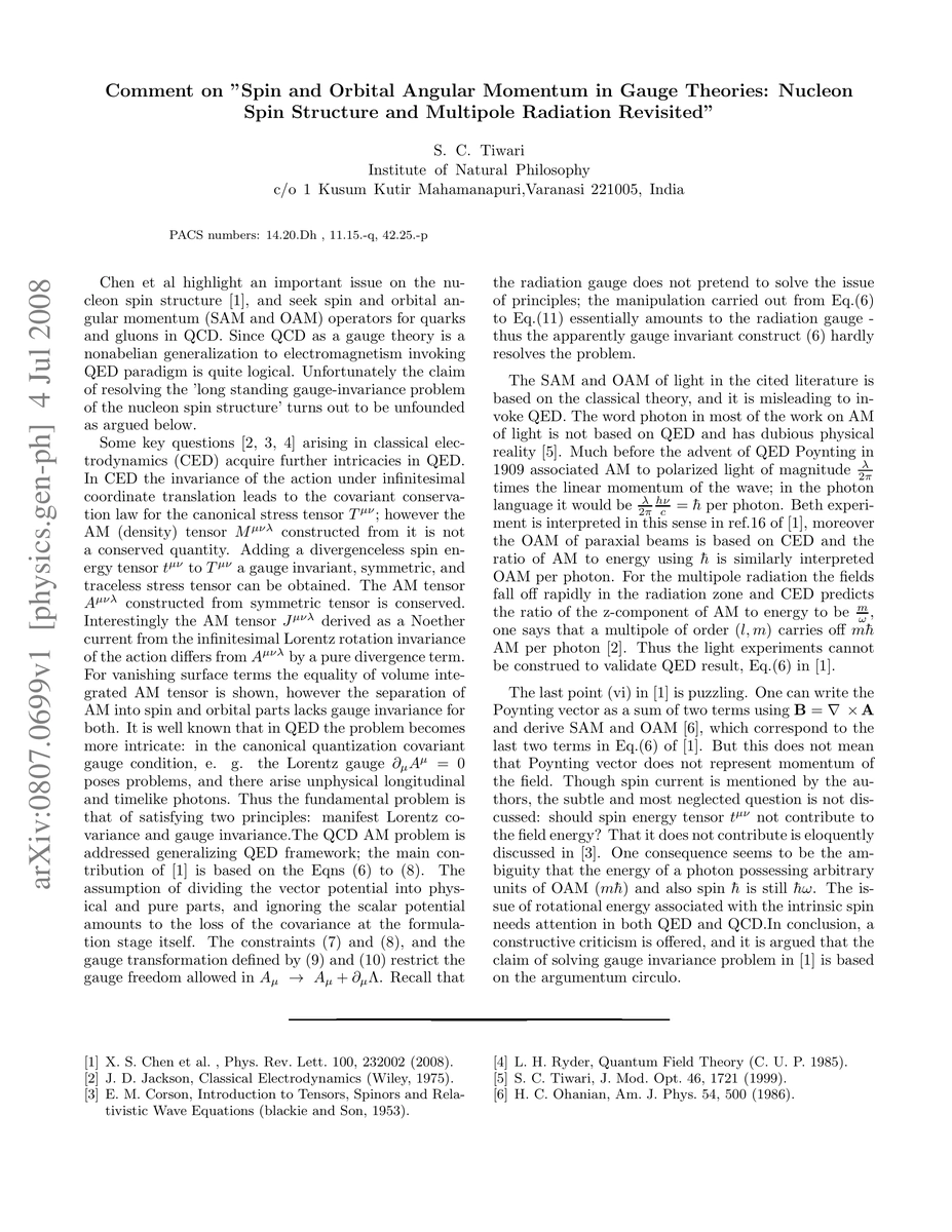 This is a comment on Chen et al Letter PRL,100, 232002 (2008).