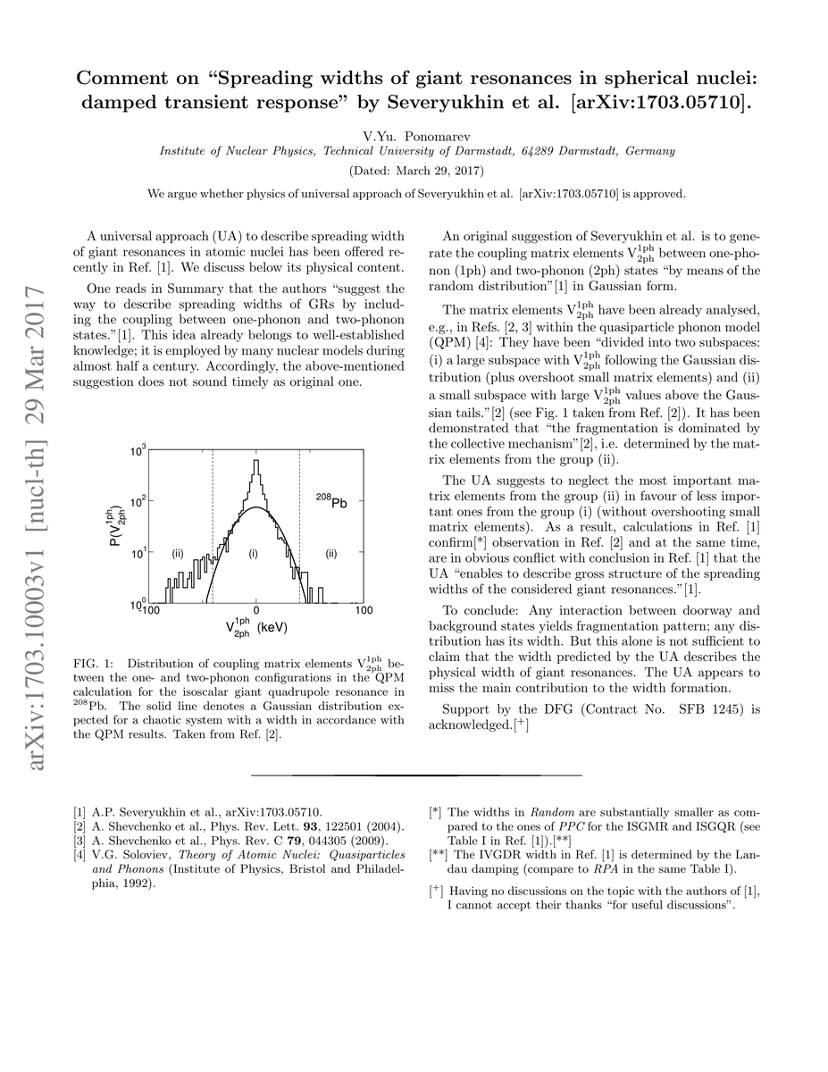 This paper critically examines the universal approach proposed by Severyukhin et al. for explaining the spreading widths of giant resonances in spherical nuclei, questioning the validity and physics underpinning their transient response model.