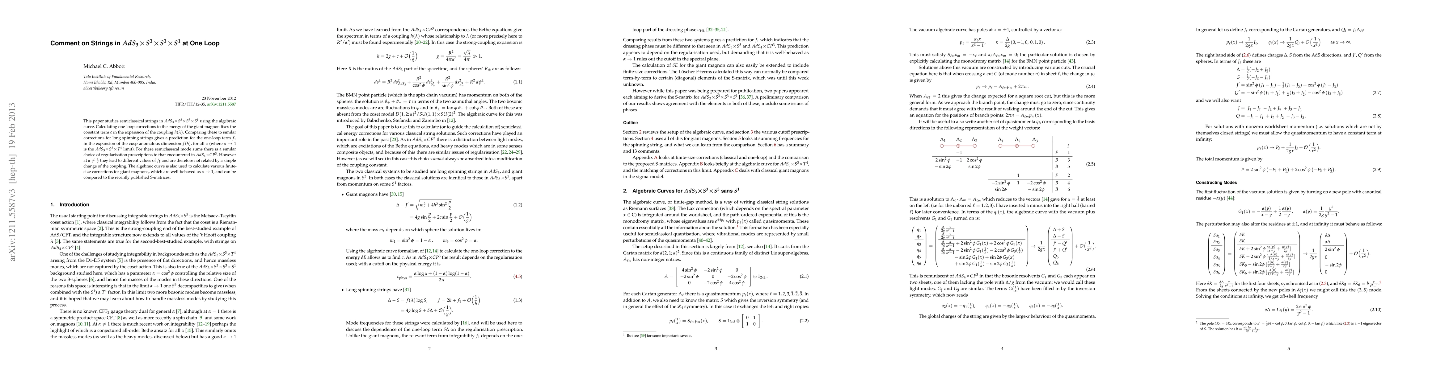 This paper studies semiclassical strings in AdS3 x S3 x S3 x S1 using the algebraic curve. Calculating one-loop corrections to the energy of the giant magnon fixes the constant term c in the expansion of the coupling h(\lambda). Comparing these to similar corrections for long spinning strings gives a prediction for the one-loop term f_1 in the expansion of the cusp anomalous dimension f(h), for all \alpha (where \alpha --> 1 is the AdS3 x S3 x T4 limit). For these semiclassical mode sums there is a similar choice of regularisation prescriptions to that encountered in AdS4 x CP3. However at \alpha \neq 1/2 they lead to different values of f_1 and are therefore not related by a simple change of the coupling. The algebraic curve is also used to calculate various finite-size corrections for giant magnons, which are well-behaved as \alpha --> 1, and can be compared to the recently published S-matrices.