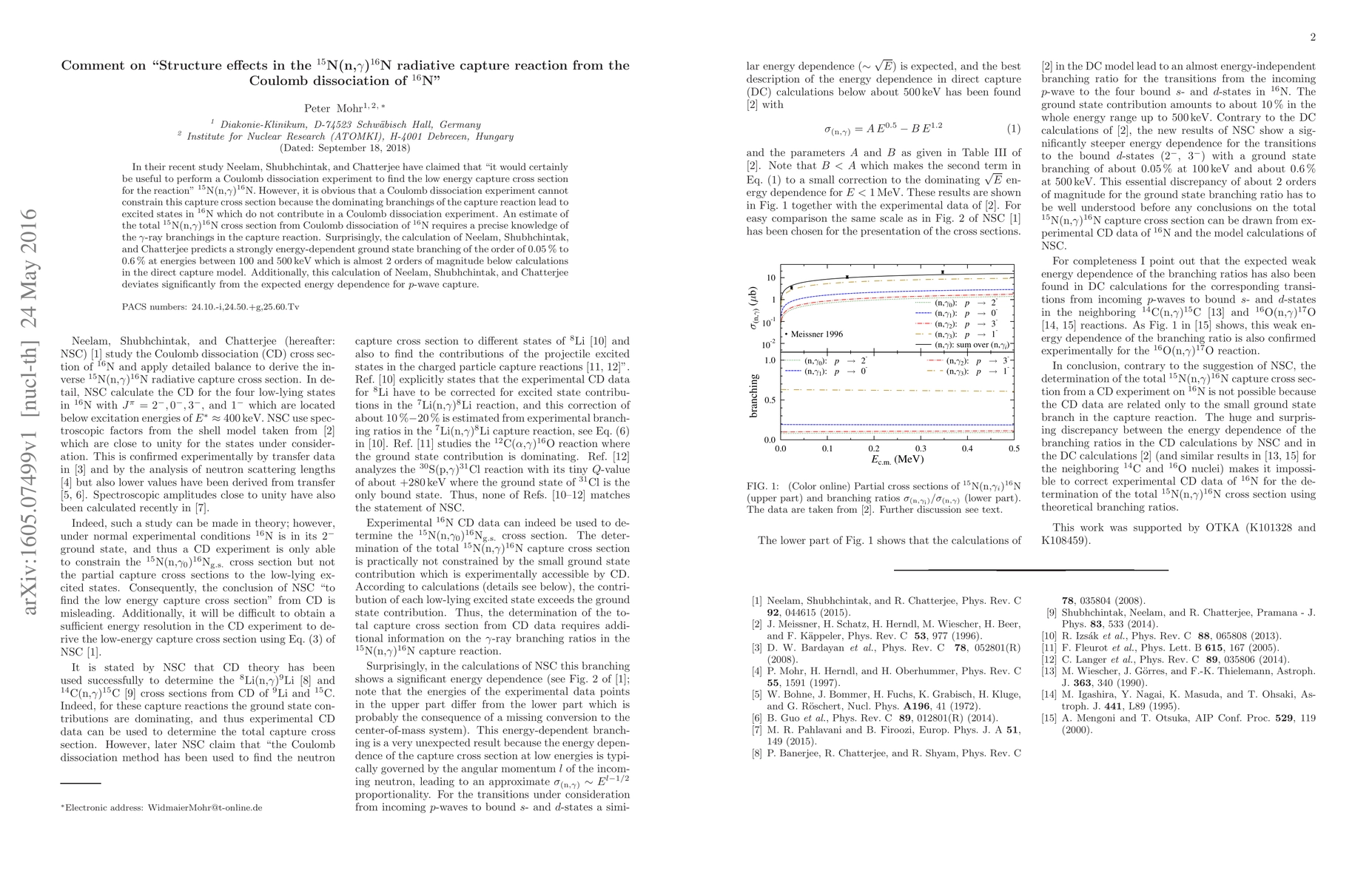 In their recent study Neelam, Shubhchintak, and Chatterjee have claimed that "it would certainly be useful to perform a Coulomb dissociation experiment to find the low energy capture cross section for the reaction" $^{15}$N(n,$\gamma$)$^{16}$N. However, it is obvious that a Coulomb dissociation experiment cannot constrain this capture cross section because the dominating branchings of the capture reaction lead to excited states in $^{16}$N which do not contribute in a Coulomb dissociation experiment. An estimate of the total $^{15}$N(n,$\gamma$)$^{16}$N cross section from Coulomb dissociation of $^{16}$N requires a precise knowledge of the $\gamma$-ray branchings in the capture reaction. Surprisingly, the calculation of Neelam, Shubhchintak, and Chatterjee predicts a strongly energy-dependent ground state branching of the order of 0.05\% to 0.6\% at energies between 100 and 500 keV which is almost 2 orders of magnitude below calculations in the direct capture model. Additionally, this calculation of Neelam, Shubhchintak, and Chatterjee deviates significantly from the expected energy dependence for $p$-wave capture.