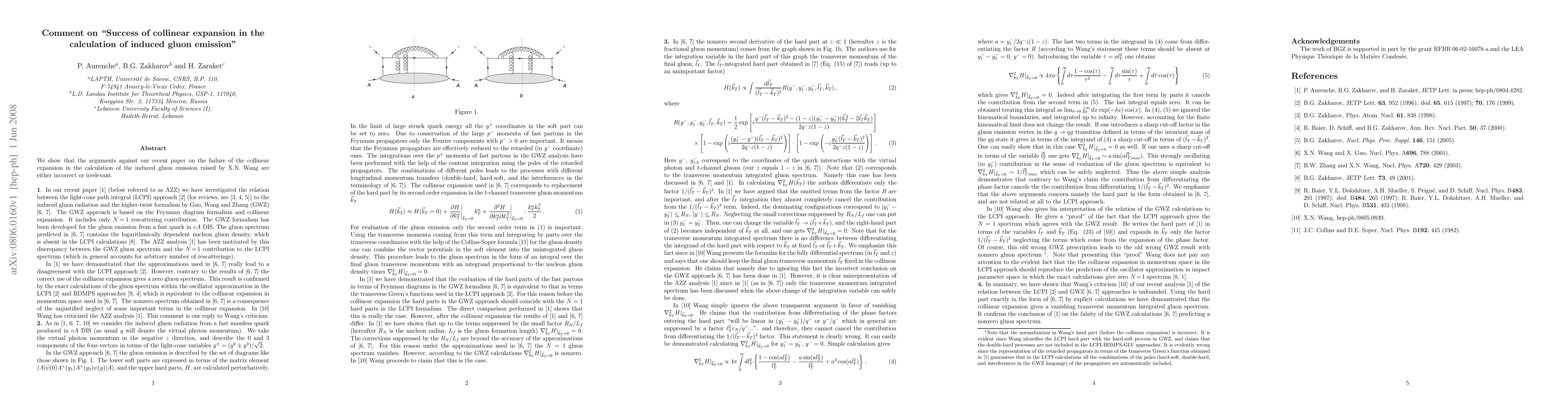 We show that the arguments against our recent paper on the failure of the collinear expansion in the calculation of the induced gluon emission raised by X.N. Wang are either incorrect or irrelevant.