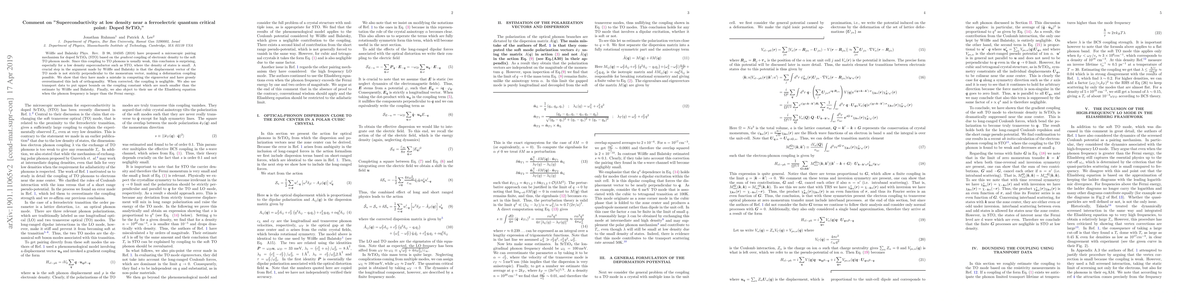 A research paper critiques a proposal for superconductivity in doped SrTiO3, arguing that a key assumption about the coupling between electrons and phonons is incorrect, leading to an overestimation of the coupling constant.