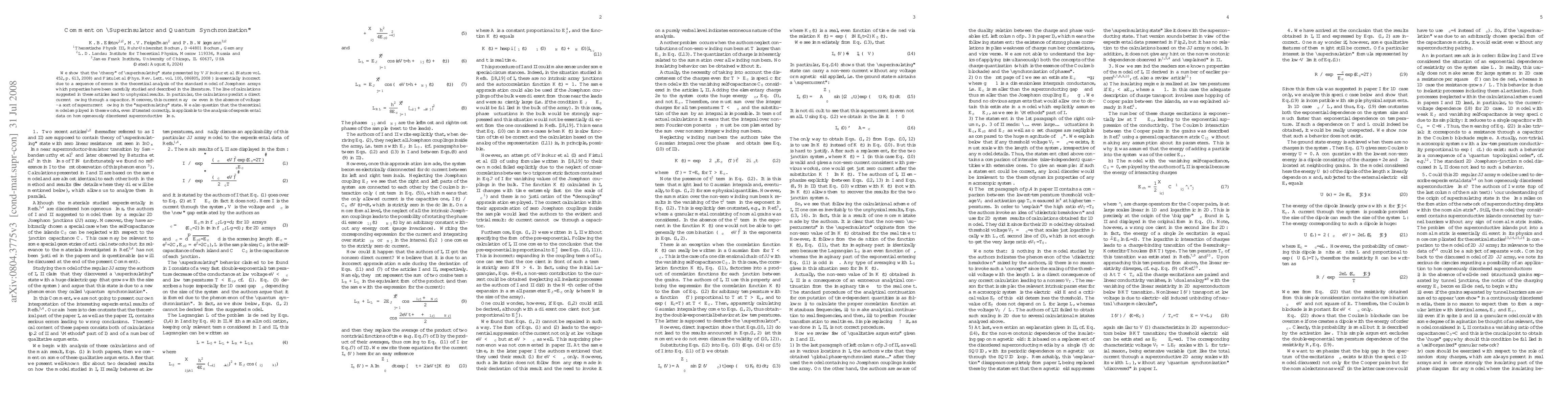 We show that the "theory" of "superinsulating" state presented by V.Vinokur et al (Nature vol. 452, p. 613, 2008) and Fistul et al (Phys. Rev. Lett. vol. 100, 086805, 2008) is essentially incorrect due to a sequence of errors in the theoretical analysis of the standard model of Josephson arrays which properties have been carefully studied and described in the literature. The line of calculations suggested in these articles lead to unphysical results. In particular, the calculations predict a direct current flowing through a capacitor. Moreover, this current may flow even in the absence of voltage - a sort of supercurrent flowing in the "superinsulating" state. We also question that the theoretical model employed in these works, even if treated correctly, is applicable to the analysis of experimental data on homogeneously disordered superconductive films.