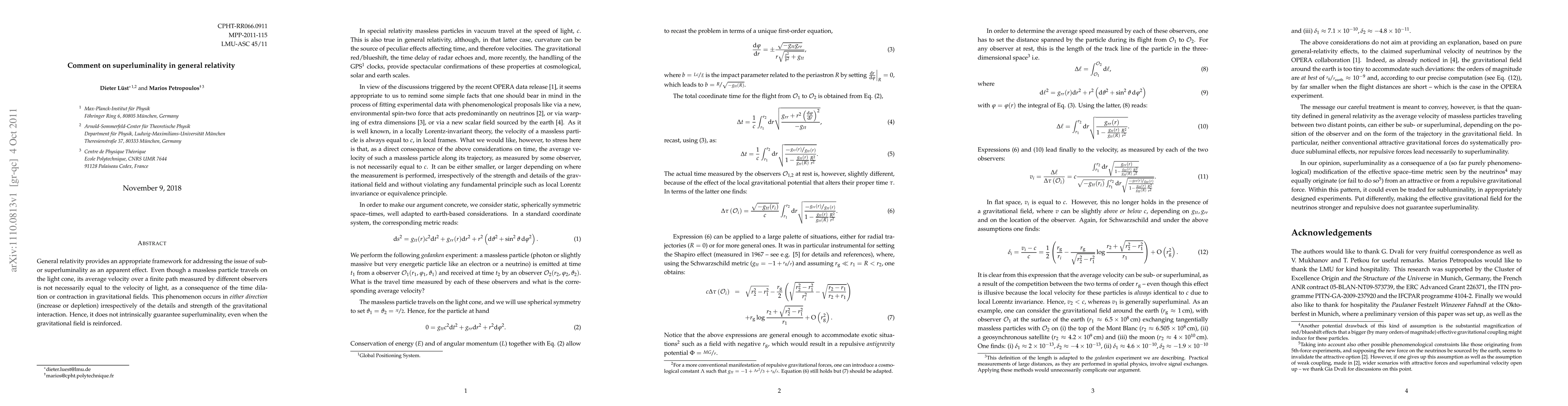 This paper discusses how general relativity can lead to apparent superluminality due to time dilation or contraction in gravitational fields, but clarifies that this does not inherently mean superluminal travel, as observed velocities depend on the path and the observer's frame.