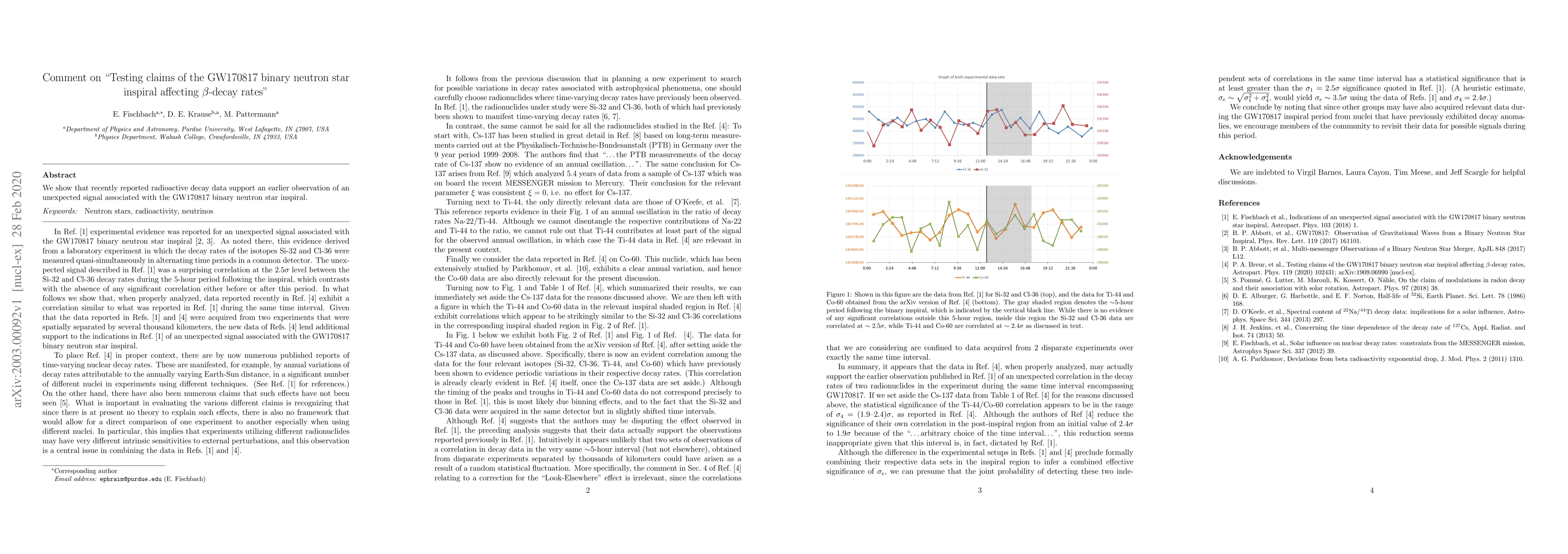 We show that recently reported radioactive decay data support an earlier observation of an unexpected signal associated with the GW170817 binary neutron star inspiral.