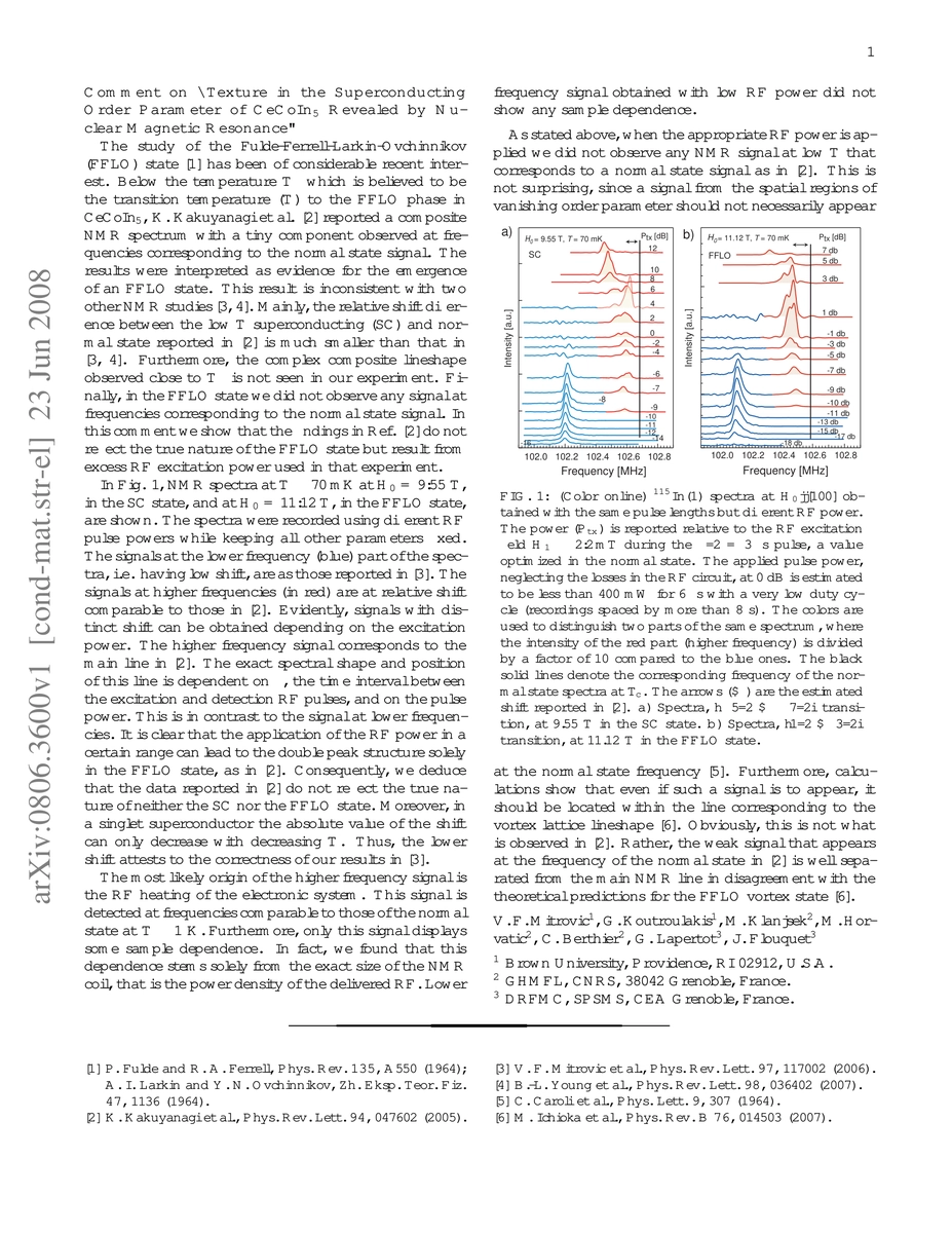 The study of the Fulde-Ferrell-Larkin-Ovchinnikov (FFLO) state has been of considerable recent interest. Below the temperature $T^*$ which is believed to be the transition temperature ($T$) to the FFLO phase in CeCoIn$_5$, K. Kakuyanagi et al. (Phys. Rev. Lett. 94, 047602 (2005)) reported a composite NMR spectrum with a tiny component observed at frequencies corresponding to the normal state signal. The results were interpreted as evidence for the emergence of an FFLO state. This result is inconsistent with two other NMR studies of V. F. Mitrovi{\'c} et al. (Phys. Rev. Lett. 97, 117002 (2006)) and B.-L. Young et al. (Phys. Rev. Lett. 98, 036402 (2007)). In this comment we show that the findings of K. Kakuyanagi et al. do not reflect the true nature of the FFLO state but result from excess RF excitation power used in that experiment.