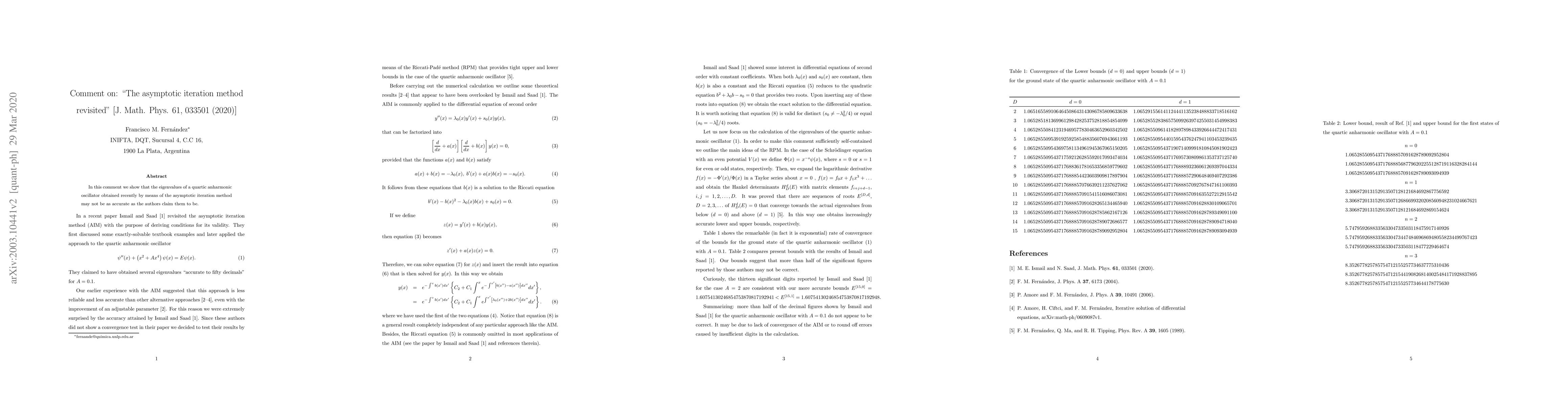 A new study questions the accuracy of eigenvalues from an asymptotic iteration method used to model a quartic anharmonic oscillator.