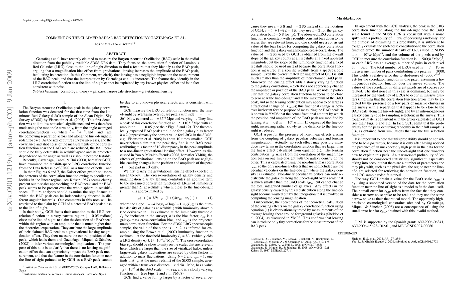 A recent study incorrectly claims to detect Baryon Acoustic Oscillations using data from the Sloan Digital Sky Survey. An expert comment clarifies that lensing bias does not explain the observed feature and it is consistent with noise in the data.