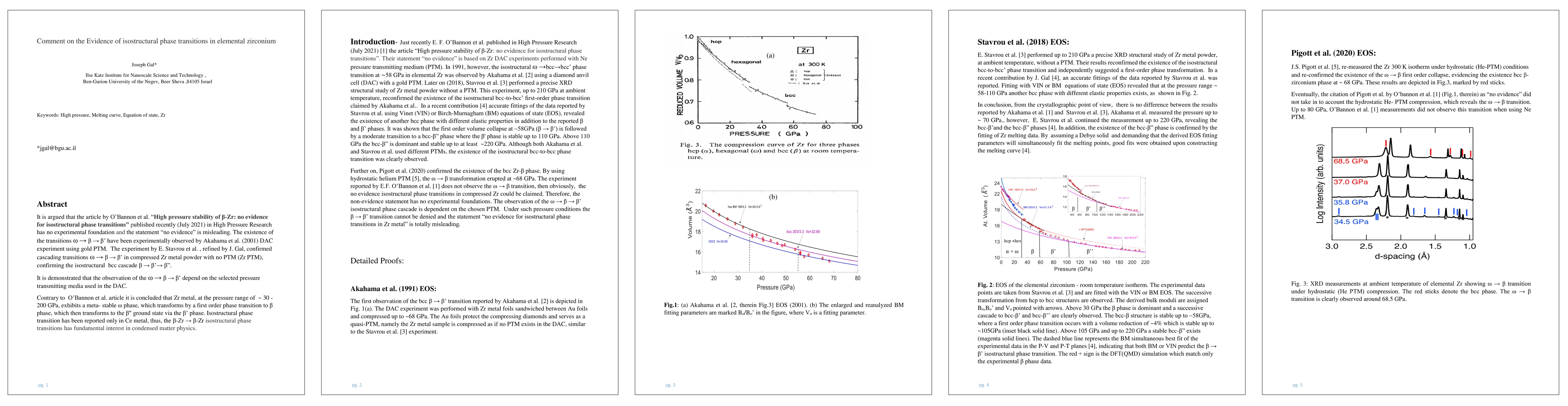 It is argued that the article by O.Bannon et al. ; High pressure stability of beta-Zr: no evidence for isostructural phase transitions, published recently -July 2021 - in High Pressure Research has no experimental foundation and the statement no evidence is absolutly misleading. Isostructural phase transition has been reported only in Ce metal, thus, the Beta-Zr to beta prime -Zr isostructural phase transitions has fundamental interest in condensed matter physics.