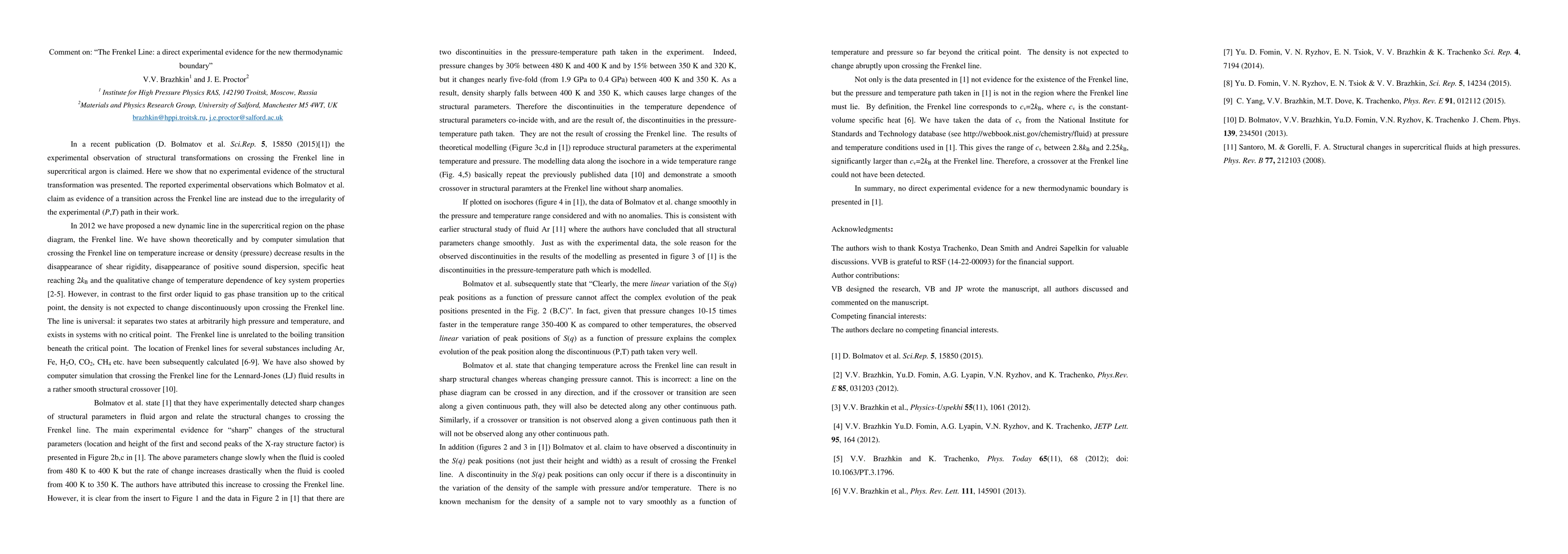 In a recent publication (D. Bolmatov et al. Sci.Rep. 5, 15850 (2015)) the experimental observation of structural transformations on crossing the Frenkel line in supercritical argon is claimed. Here we show that no experimental evidence of the structural transformation was presented. The reported experimental observations which Bolmatov et al. claim as evidence of a transition across the Frenkel line are instead due to the irregularity of the experimental (P,T) path in their work.