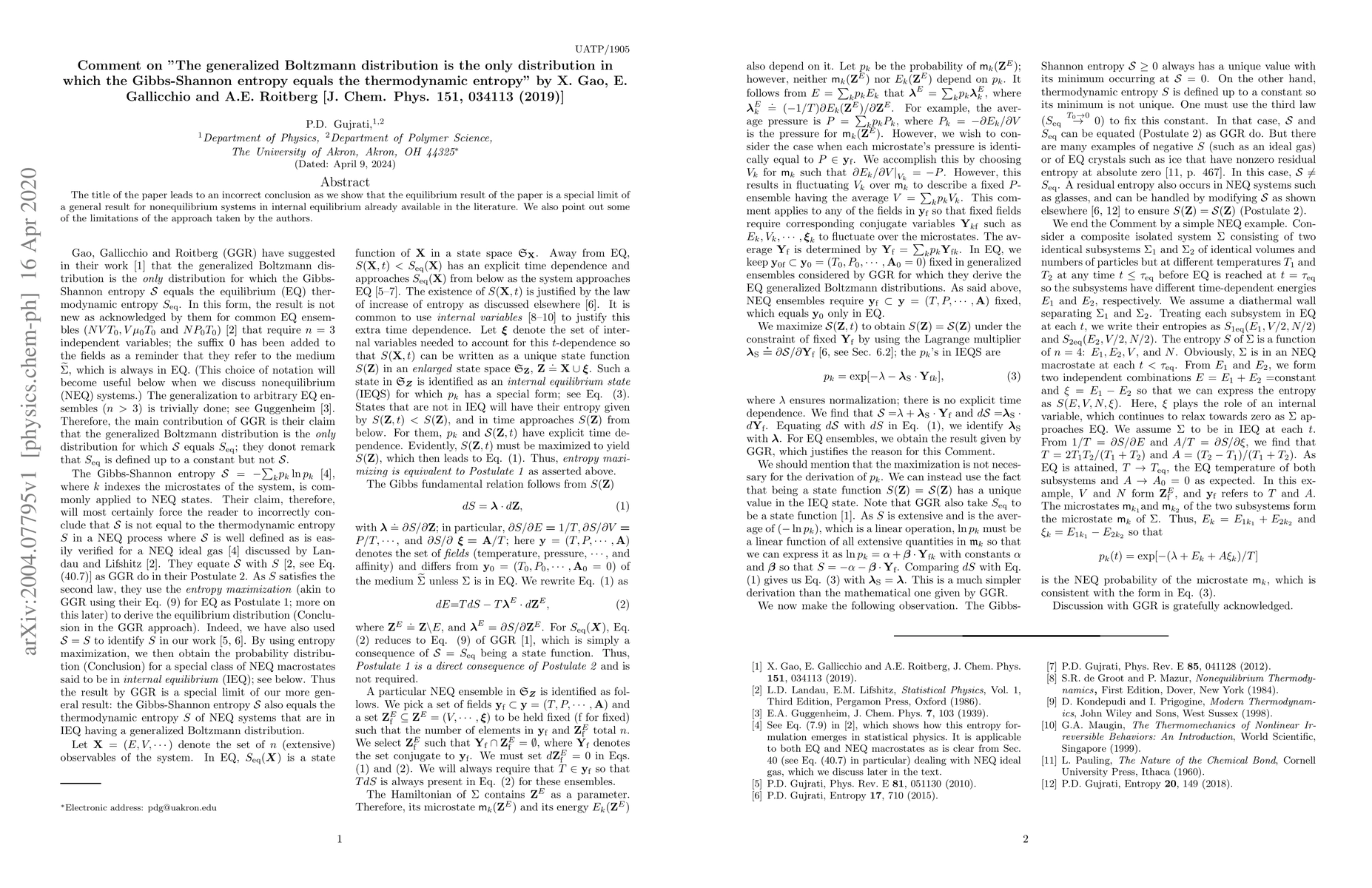 Researchers challenge a paper claiming that the generalized Boltzmann distribution is unique in achieving equality between Gibbs-Shannon entropy and thermodynamic entropy, finding instead that it's a special case of a broader result for nonequilibrium systems.