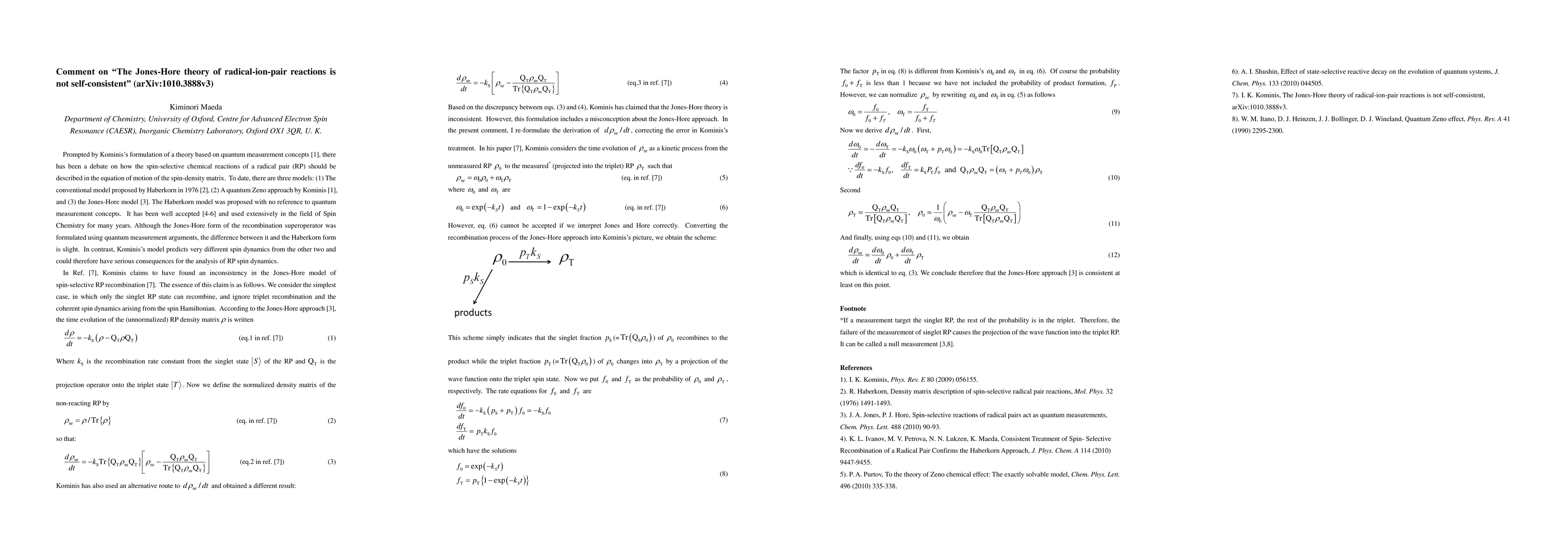 Researchers clarify a mistake in a previous paper regarding the Jones-Hore theory of radical-ion-pair reactions, demonstrating its consistency with re-formulated equations.