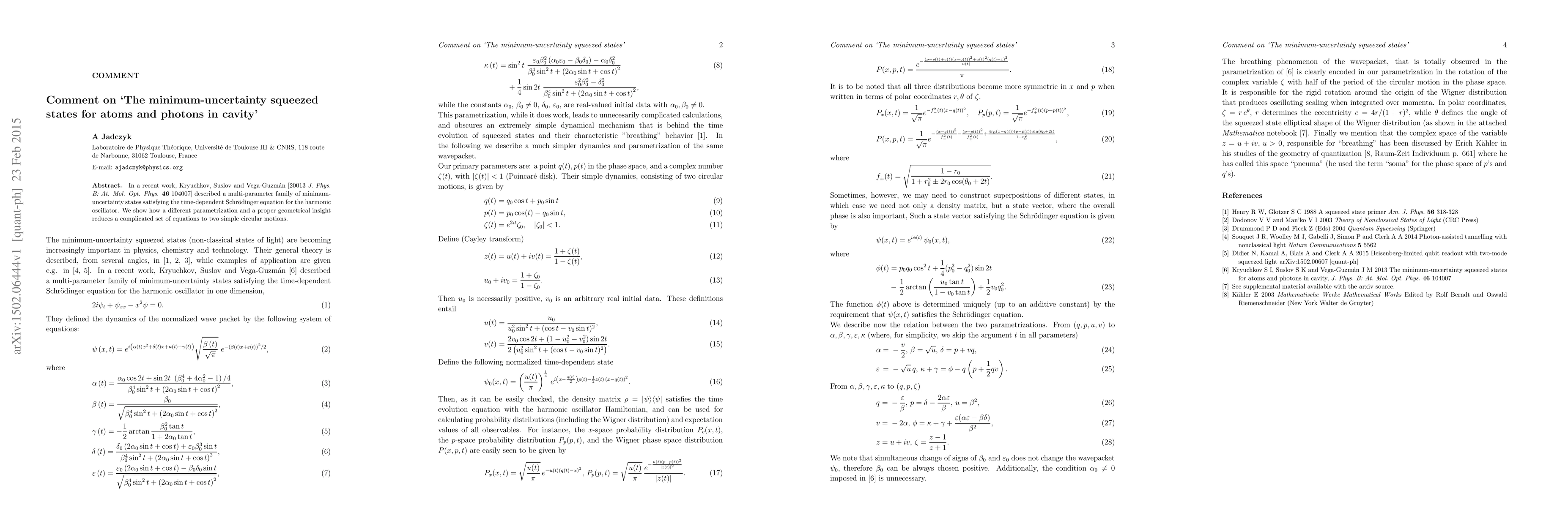 In a recent work, Kryuchkov, Suslov and Vega-Guzman [20013 J. Phys. B: At. Mol. Opt. Phys. 46 104007] described a multi-parameter family of minimum-uncertainty states satisfying the time-dependent Schrodinger equation for the harmonic oscillator. We show how a different parametrization and a proper geometrical insight reduces a complicated set of equations to two simple circular motions.