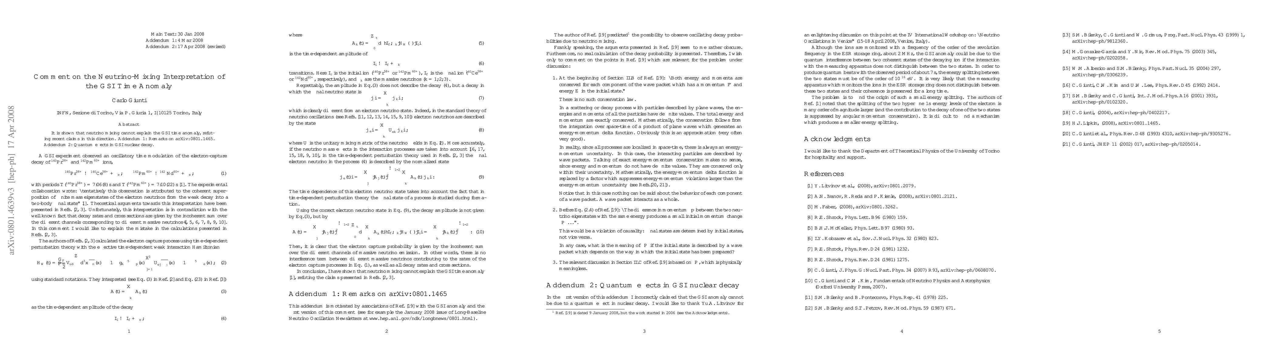 Researchers refute recent claims that neutrino mixing can explain a time anomaly in GSI nuclear decay experiments, suggesting alternative explanations including quantum effects.