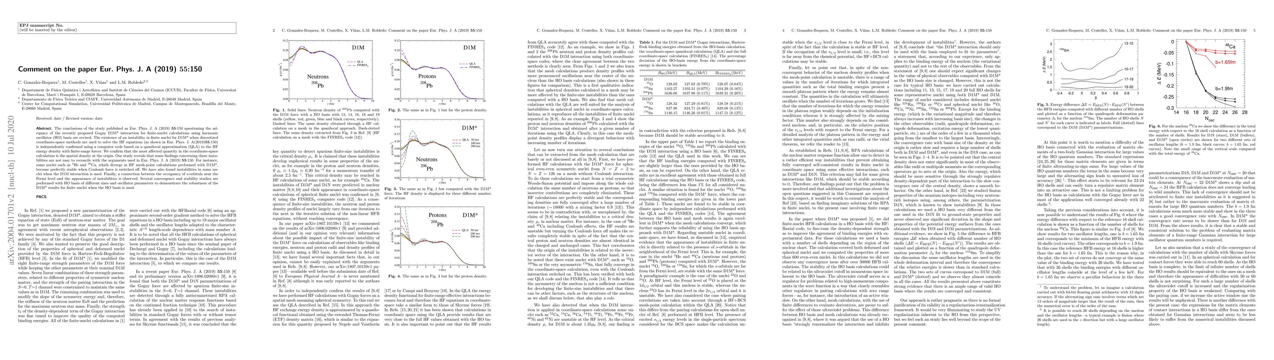 The conclusions of the study published as Eur. Phys. J. A (2019) 55:150 questioning the adequacy of the recently proposed Gogny D1M* interaction for finite-nuclei calculations using harmonic oscillator (HO) basis are revised. The existence of an instability in finite nuclei for D1M* when coordinate-space methods are used to solve the HF equations (as shown in Eur. Phys. J. A(2019) 55:150) is independently confirmed using a computer code based on a quasi-local approximation (QLA) to the HF energy density with finite-range forces. We confirm that the most affected quantity in the coordinate-space calculation is the spatial density at the origin. Our study reveals that some findings concerning these instabilities are not easy to reconcile with the arguments used in Eur. Phys. J. A (2019) 55:150. For instance, some nuclei such as $^4$He and $^{40}$Ca, which diverge in HF mesh-point calculations performed with D1M*, become perfectly stable when Coulomb force is switched off. We have also found instabilities in some nuclei when the D1M interaction is used. Finally, a connection between the occupancy of $s$-orbitals near the Fermi level and the appearance of instabilities is observed. Several convergence and stability studies are performed with HO basis of different sizes and oscillator parameters to demonstrate the robustness of the D1M* results for finite nuclei when the HO basis is used.