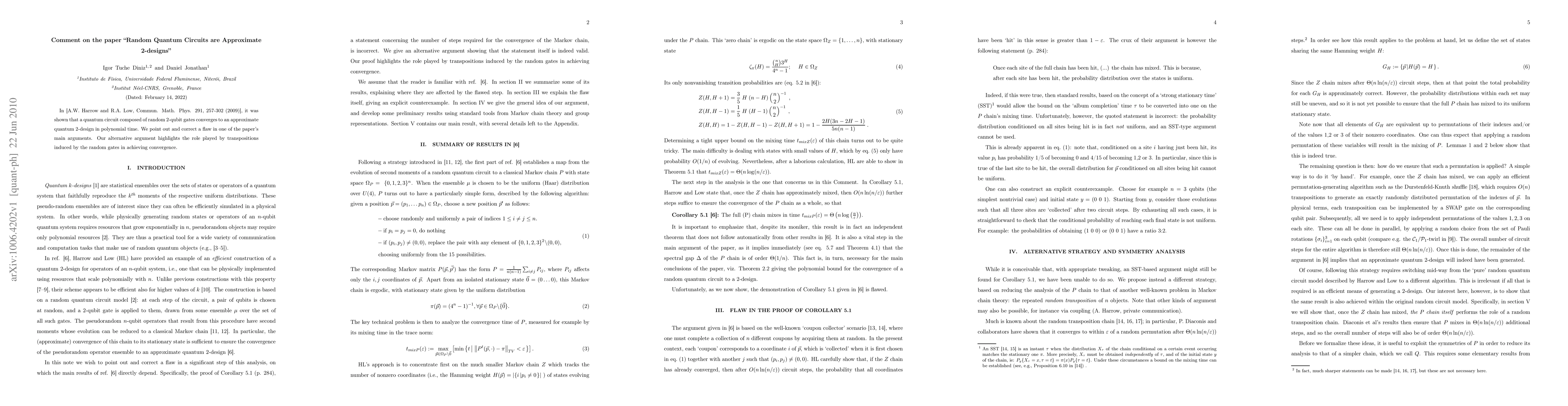 This comment corrects a flaw in a previous study showing random 2-qubit quantum circuits converge to approximate 2-designs in polynomial time, emphasizing the role of transpositions induced by random gates in achieving convergence.
