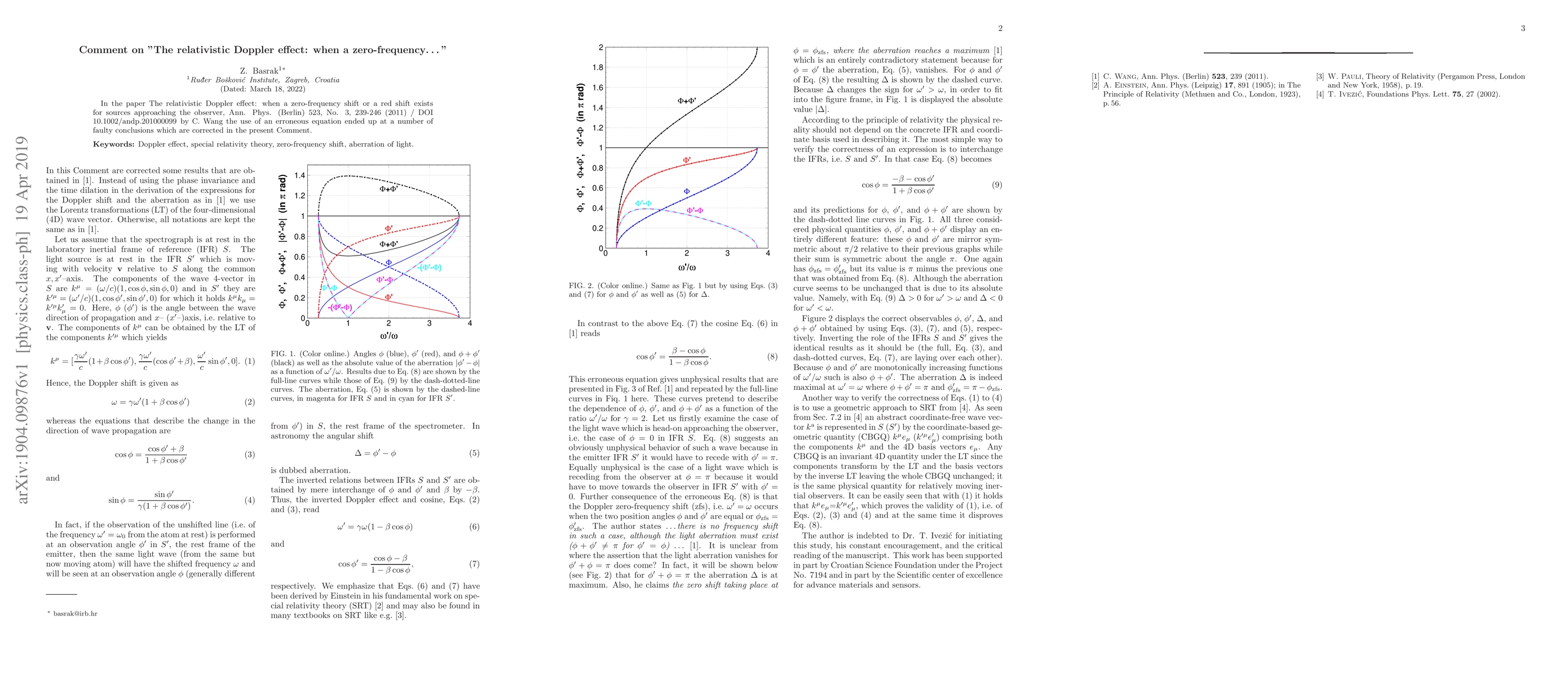 A research paper critiques an earlier study on the relativistic Doppler effect, correcting faulty conclusions caused by an erroneous equation. The corrected work provides a more accurate understanding of the phenomenon when sources approach an observer at zero frequency shift or with a redshift.