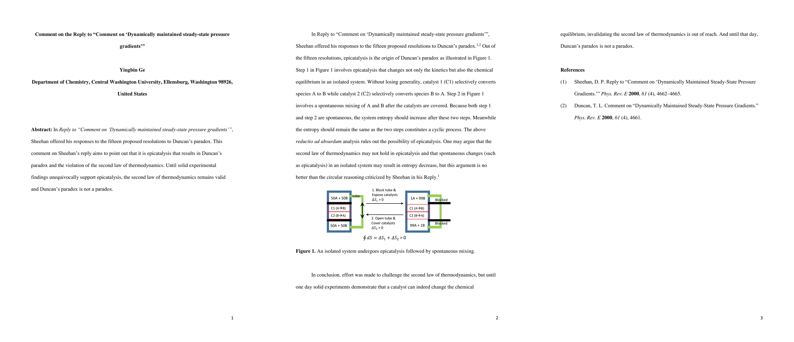 This comment critiques Sheehan's responses to proposed resolutions of Duncan's paradox, arguing that epicatalysis, rather than resolving the paradox, actually violates the second law of thermodynamics. Until experimental evidence supports epicatalysis, the second law remains valid and Duncan's paradox is not a true paradox.