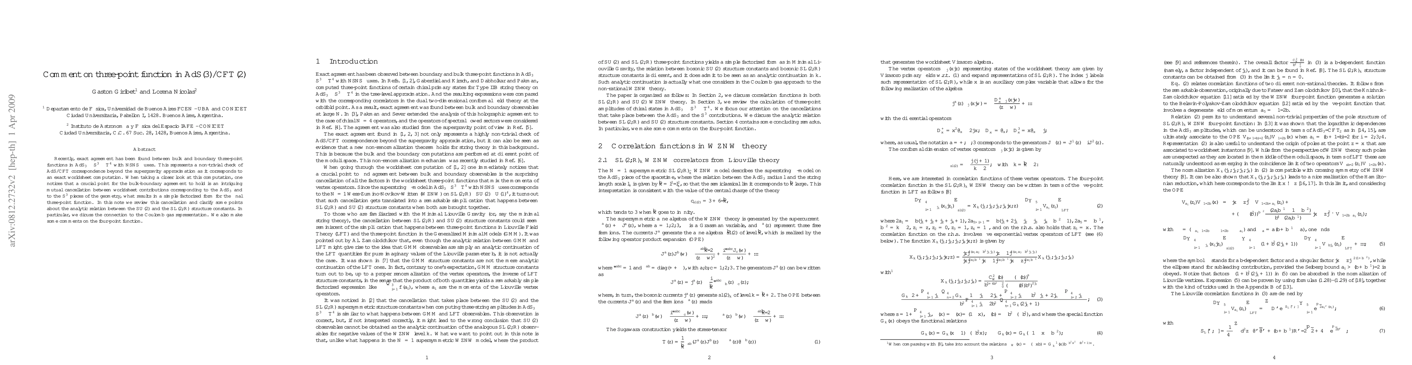 This paper examines the exact agreement between bulk and boundary three-point functions in AdS_3/CFT_2, highlighting a mutual cancellation between worldsheet contributions from AdS_3 and S^3 sectors. It clarifies the analytic relationship between SU(2) and SL(2,R) structure constants, connecting it to the Coulomb gas representation, and briefly comments on the four-point function.