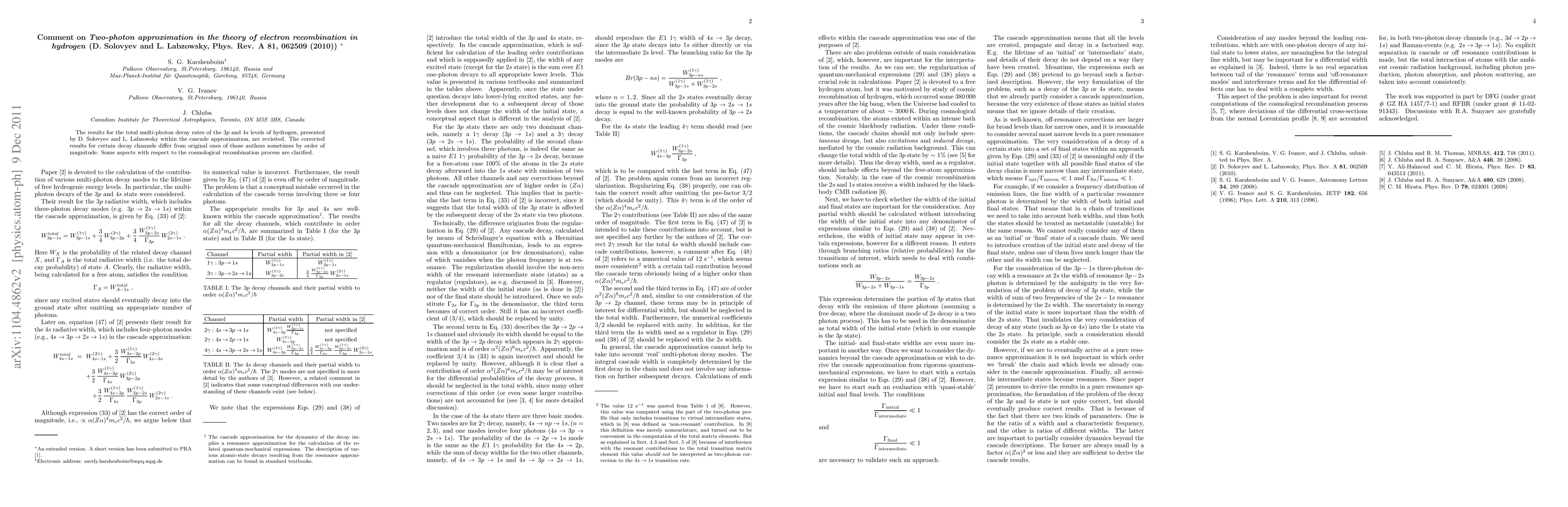Researchers re-examined the multi-photon decay rates of hydrogen's 3p and 4s levels, finding corrected results that differ from original estimates by up to an order of magnitude, with implications for understanding the cosmological recombination process.
