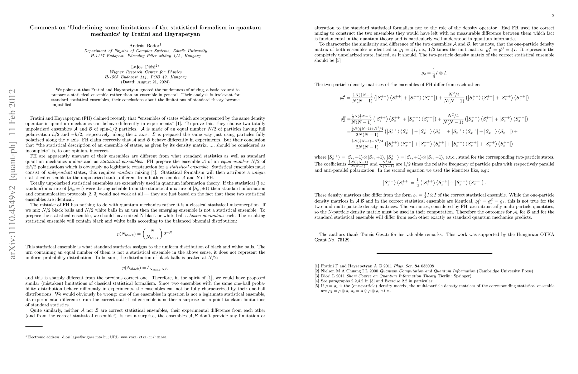 We point out that Fratini and Hayrapetyan ignored the randomness of mixing, a basic request to prepare a statistical ensemble rather than an ensemble in general. Their analysis is irrelevant for standard statistical ensembles, their conclusions about the limitations of standard theory become unjustified.