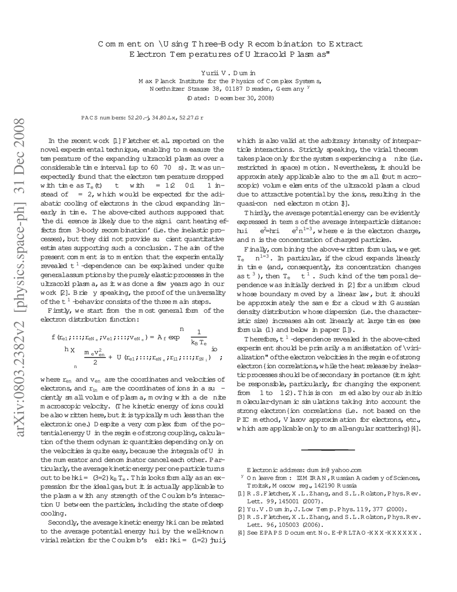 This paper comments on a recent experimental technique by Fletcher et al. for measuring electron temperatures in ultracold plasmas, suggesting that the observed t^{-1}-dependence of temperature can be explained by purely elastic processes rather than significant heating from 3-body recombination. The author supports this with ab initio molecular-dynamic simulations that account for strong electron-ion correlations.