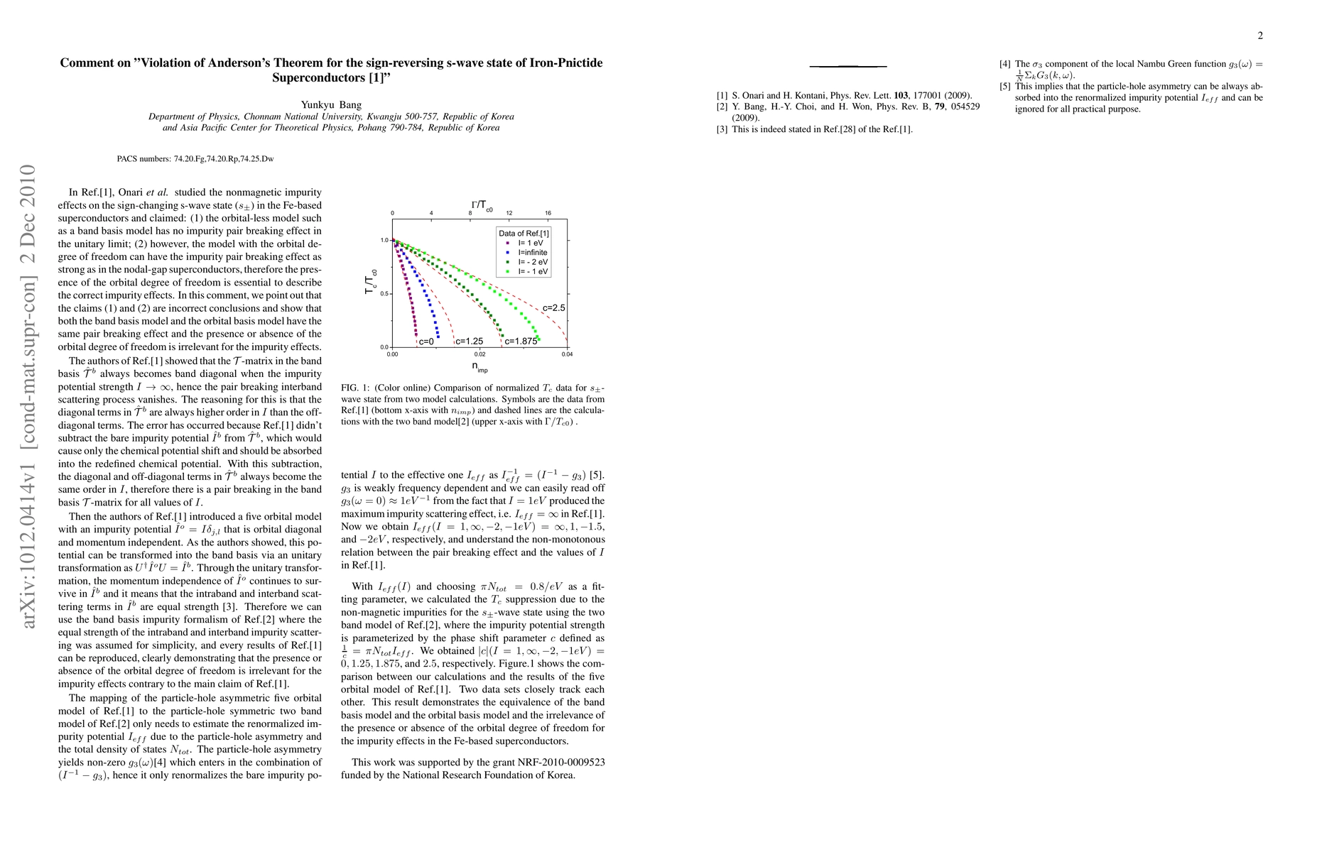 We pointed out that the main claim of Ref.[1] that the presence of the orbital degree of freedom is essential to describe the correct impurity effects for Iron-based superconductors is incorrect and demonstrated the equivalent results of Tc suppression due to impurities by both the band basis model and the orbital basis model.