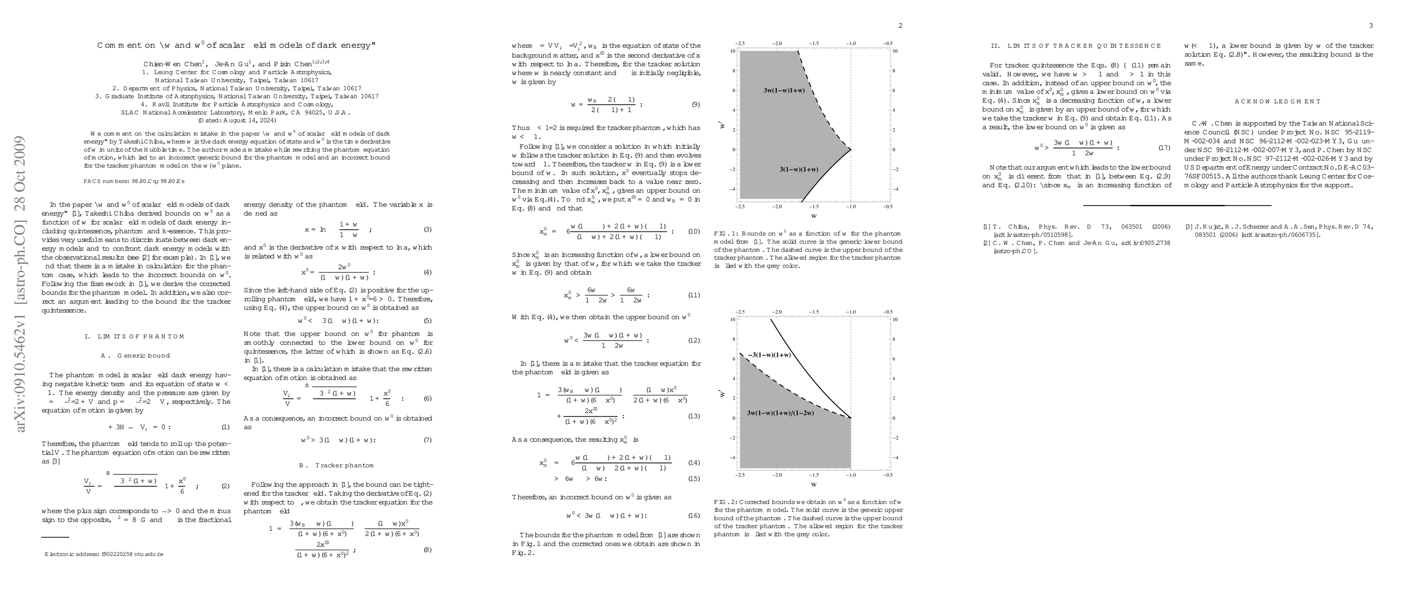Researchers corrected a calculation mistake in a paper on scalar field models of dark energy, leading to incorrect bounds for phantom and tracker phantom models on the w-w' plane.
