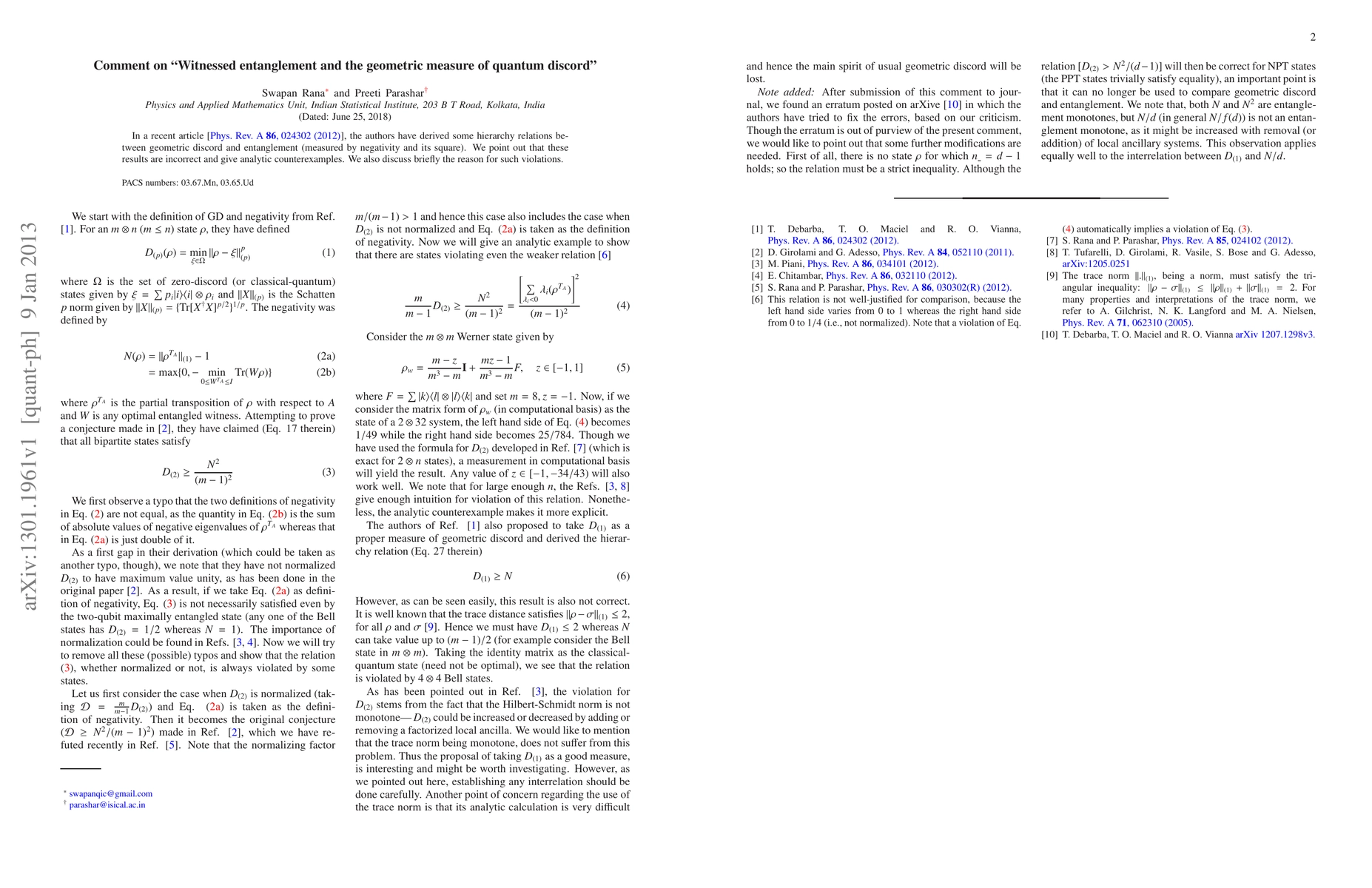 Researchers dispute a recent paper on geometric discord and entanglement hierarchy relations, finding them to be incorrect with analytic counterexamples.