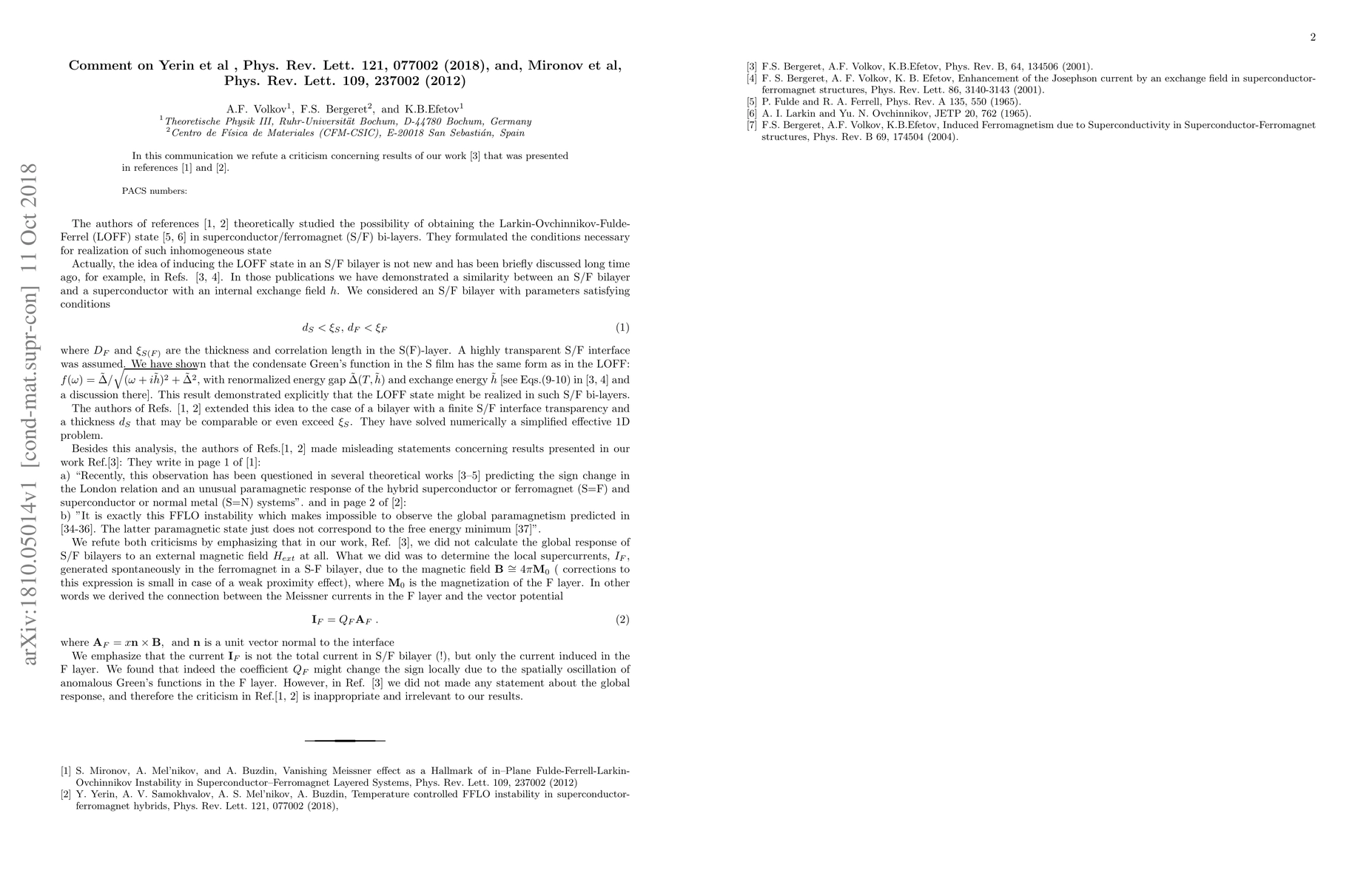 The paper presents a detailed comparison between S/F bilayers and superconductors with internal exchange fields, highlighting the conditions for realizing the LOFF state and clarifying misconceptions in previous critiques.
