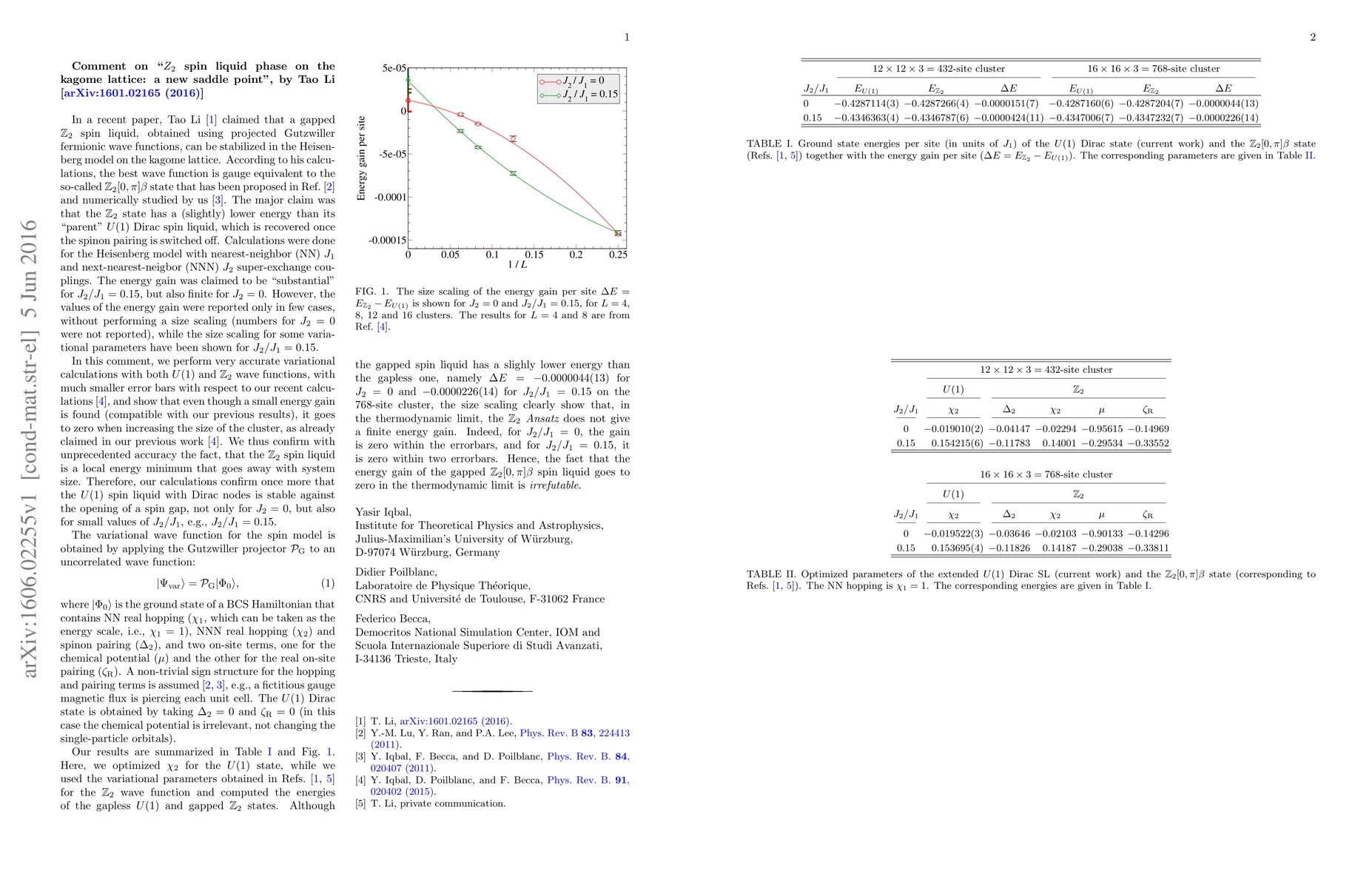 In a recent paper [arXiv:1601.02165], Tao Li claimed that a gapped $\mathbb{Z}_2$ spin liquid, obtained using projected Gutzwiller fermionic wave functions, can be stabilized in the Heisenberg model on the kagome lattice. We perform very accurate variational calculations and confirm with unprecedented accuracy the fact, that the $\mathbb{Z}_{2}$ spin liquid is a local energy minimum that goes away with system size, thus reaffirming the scenario of a gapless $U(1)$ Dirac spin liquid ground state.