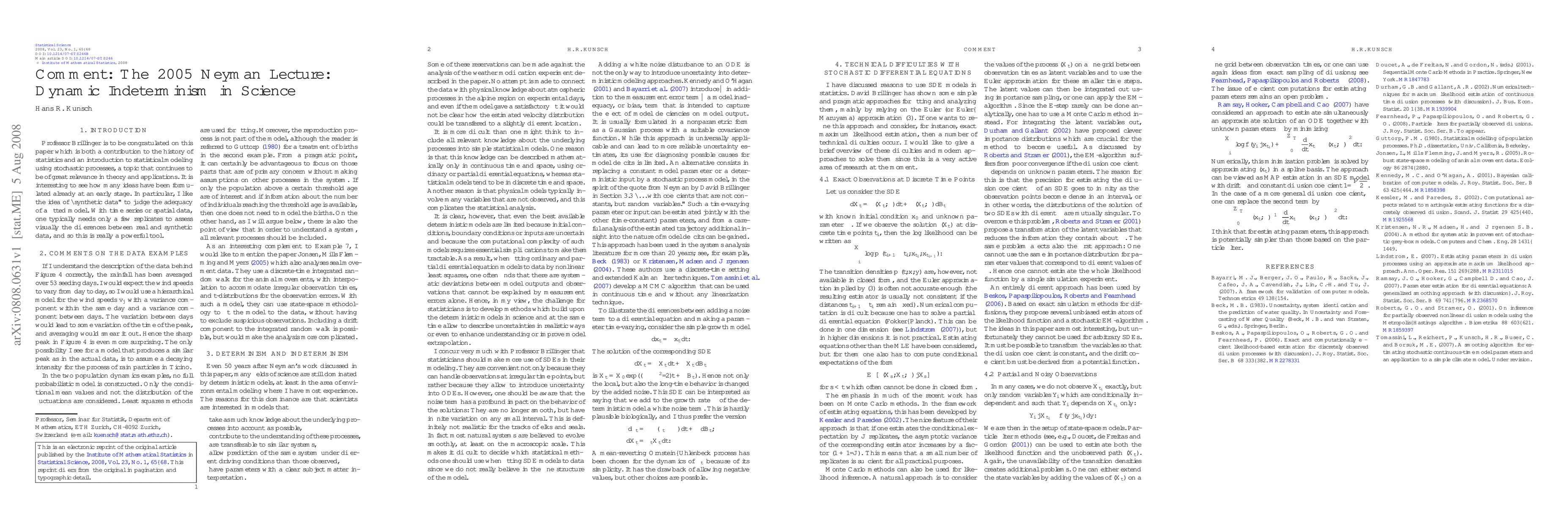 This paper critiques the 2005 Neyman Lecture on dynamic indeterminism in science, arguing that while the lecture highlights the role of uncertainty and unpredictability in scientific processes, it overlooks the structured frameworks that can help manage and interpret such indeterminism. The author emphasizes the need for a balanced view that integrates both deterministic and indeterministic elements in scientific inquiry.