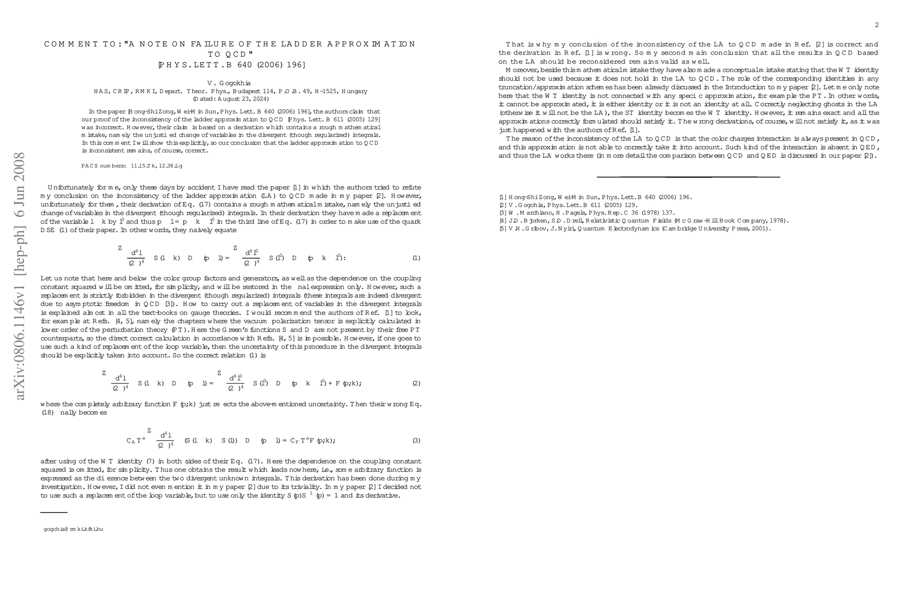 In the paper [Hong-Shi Zong, Wei-Min Sun, Phys. Lett. B 640 (2006) 196], the authors claim that our proof of the inconsistency of the ladder approximation to QCD [Phys. Lett. B 611 (2005) 129] was incorrect. However, their claim is based on a derivation which contains a rough mathematical mistake, namely the unjustified change of variables in the divergent (though regularized) integrals. In this comment I will show this explicitly, so our conclusion that the ladder approximation to QCD is inconsistent remains, of course, correct.