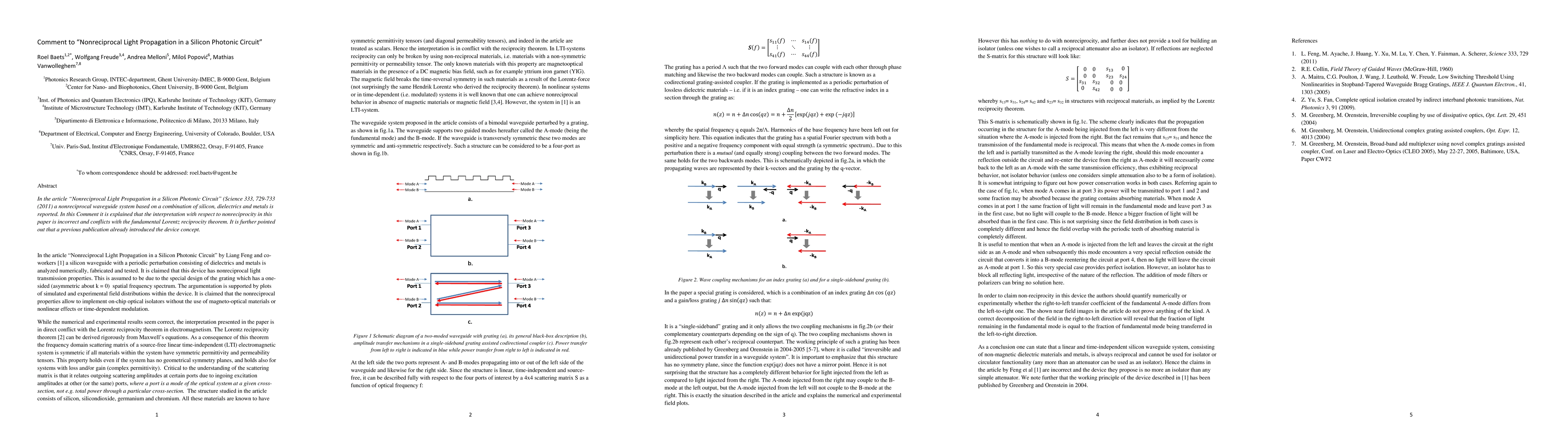 The paper challenges a nonreciprocal waveguide system based on silicon, dielectrics, and metals, citing incorrect interpretation of nonreciprocity and existing device concept.