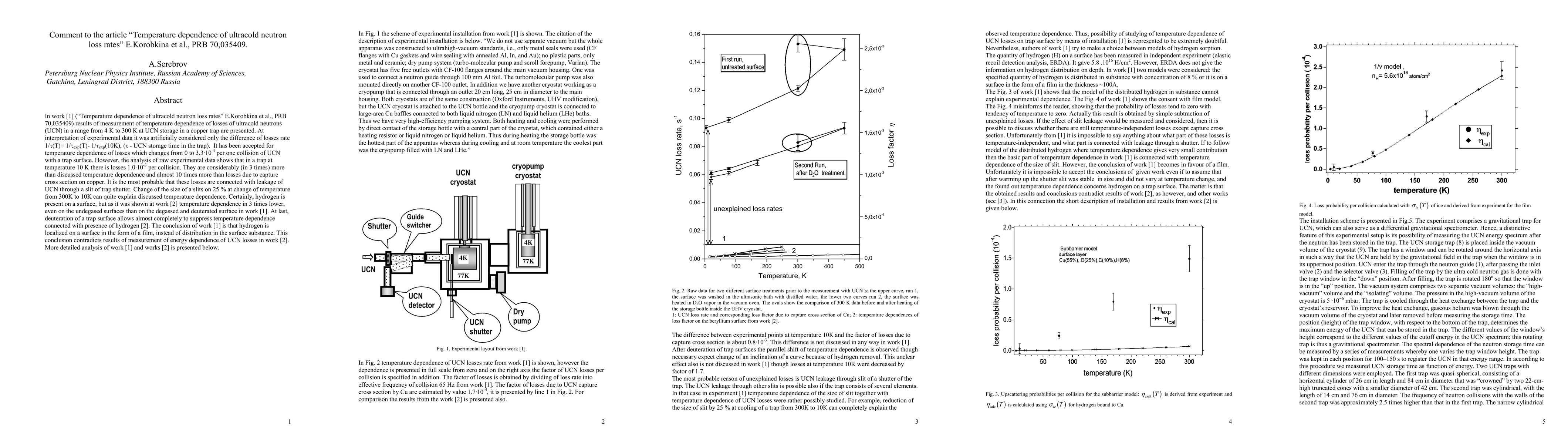 In work [1] ("Temperature dependence of ultracold neutron loss rates" E.Korobkina et al., PRB 70,035409) results of measurement of temperature dependence of losses of ultracold neutrons (UCN) in a range from 4 K to 300 K at UCN storage in a copper trap are presented. At interpretation of experimental data it was artificially considered only the difference of losses rate 1/tau(T)= 1/tau_exp(T)- 1/tau_exp(10K), (tau - UCN storage time in the trap). It has been accepted for temperature dependence of losses which changes from 0 to 3.3*10-4 per one collision of UCN with a trap surface. However, the analysis of raw experimental data shows that in a trap at temperature 10 K there is losses 1.0*10-3 per collision. They are considerably (in 3 times) more than discussed temperature dependence and almost 10 times more than losses due to capture cross section on copper. It is the most probable that these losses are connected with leakage of UCN through a slit of trap shutter. Change of the size of a slits on 25% at change of temperature from 300K to 10K can quite explain discussed temperature dependence. Certainly, hydrogen is present on a surface, but as it was shown at work [2] (V.P.Alfimenkov et al., JETP., Vol. 55, No. 2 25 Jan.1992) temperature dependence in 3 times lower, even on the undegased surfaces than on the degassed and deuterated surface in work [1]. At last, deuteration of a trap surface allows almost completely to suppress temperature dependence connected with presence of hydrogen [2]. The conclusion of work [1] is that hydrogen is localized on a surface in the form of a film, instead of distribution in the surface substance. This conclusion contradicts results of measurement of energy dependence of UCN losses in work [2]. More detailed analysis of work [1] and works [2] is presented below.