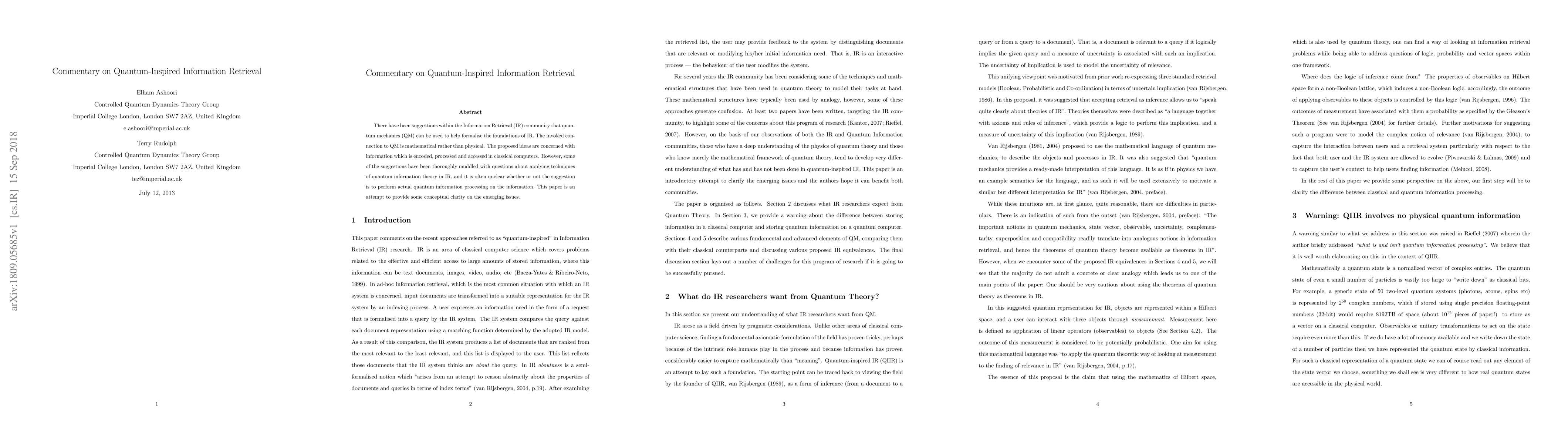 This paper aims to clarify the connection between quantum mechanics and information retrieval, distinguishing mathematical uses from actual quantum processing. It seeks to provide conceptual clarity on emerging issues in quantum-inspired IR.