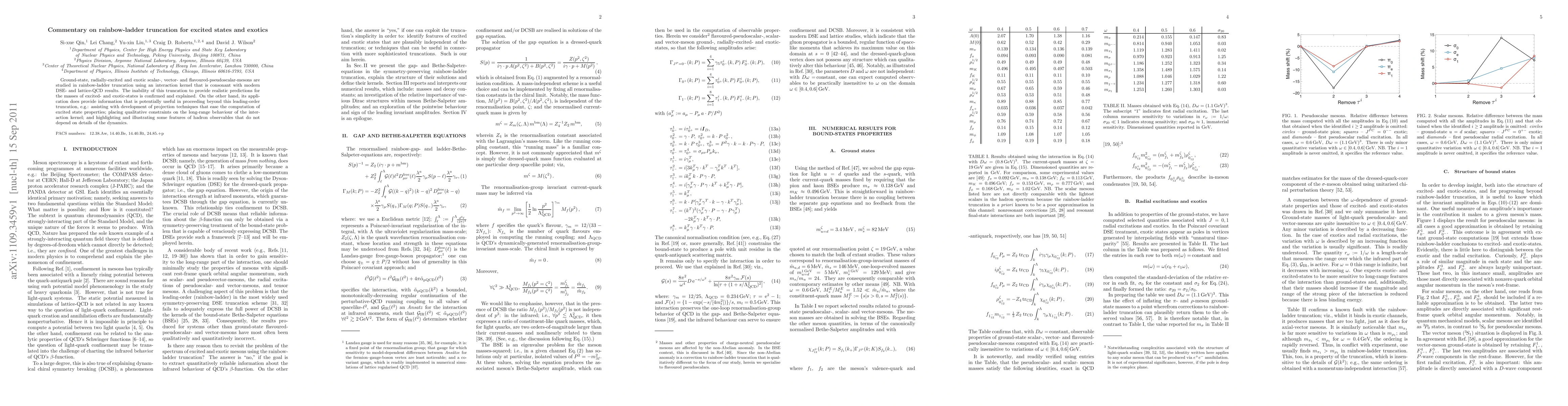 The paper examines ground-state, radially-excited, and exotic mesons using rainbow-ladder truncation. It confirms the truncation's inability to accurately predict excited and exotic state masses, but highlights its utility in guiding further research, such as developing computation techniques for excited states, constraining long-range interaction behavior, and identifying hadron observable features independent of dynamic specifics.