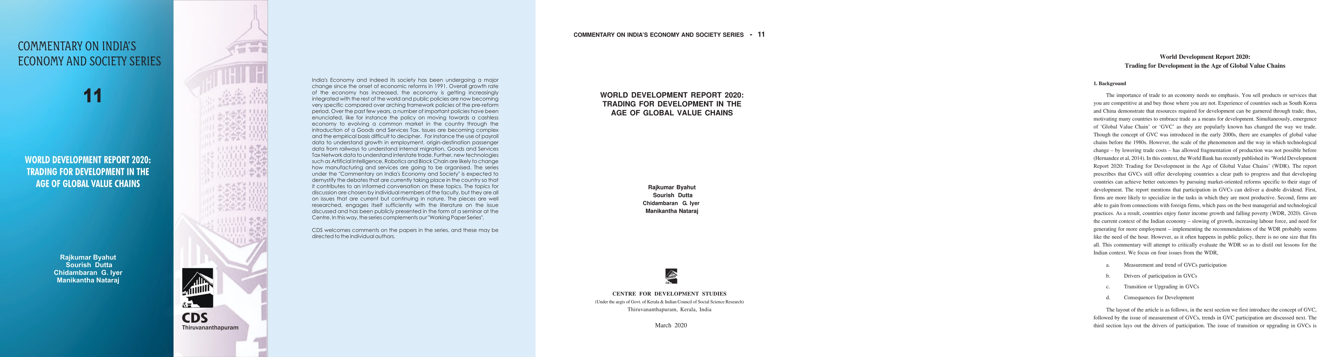 The importance of trade to an economy needs no emphasis. You sell products or services that you are competitive at and buy those where you are not. Experience of countries such as South Korea and China demonstrate that resources required for development can be garnered through trade; thus, motivating many countries to embrace trade as a means for development. Simultaneously, emergence of 'Global Value Chain' or 'GVC' as they are popularly known has changed the way we trade. Though the concept of GVC was introduced in the early 2000s, there are examples of global value chains before the 1980s. However, the scale of the phenomenon and the way in which technological change, by lowering trade costs, has allowed fragmentation of production was not possible before (Hernandez et al., 2014). In this context, the World Bank has recently published its 'World Development Report 2020: Trading for Development in the Age of Global Value Chains' (WDR). The report prescribes that GVCs still offer developing countries a clear path to progress and that developing countries can achieve better outcomes by pursuing market-oriented reforms specific to their stage of development.