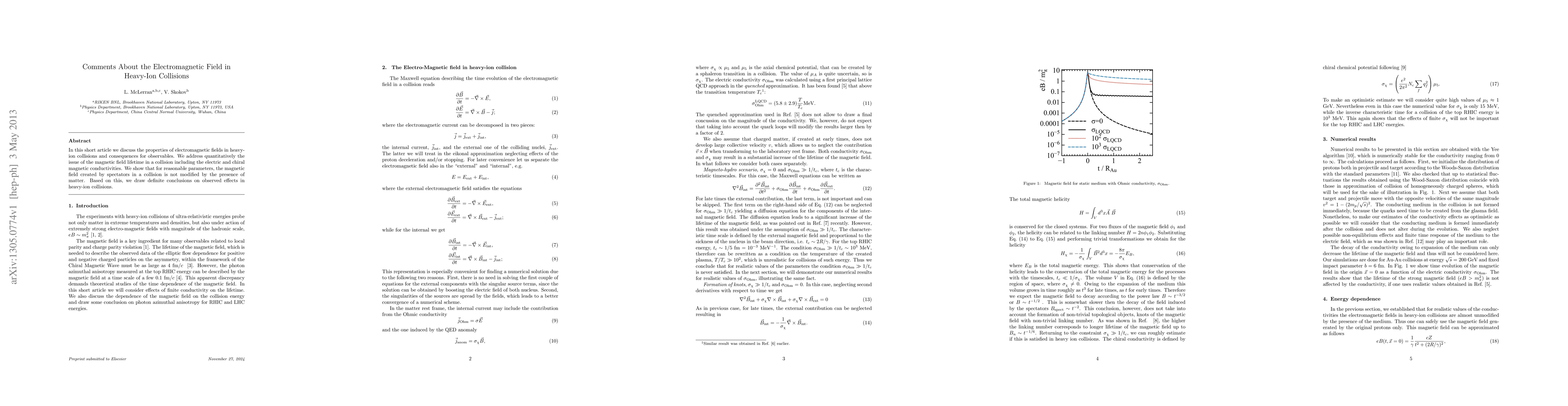 This paper investigates electromagnetic fields in heavy-ion collisions, finding that magnetic fields created by spectators remain unchanged by matter, leading to specific conclusions about observed effects in the collisions.