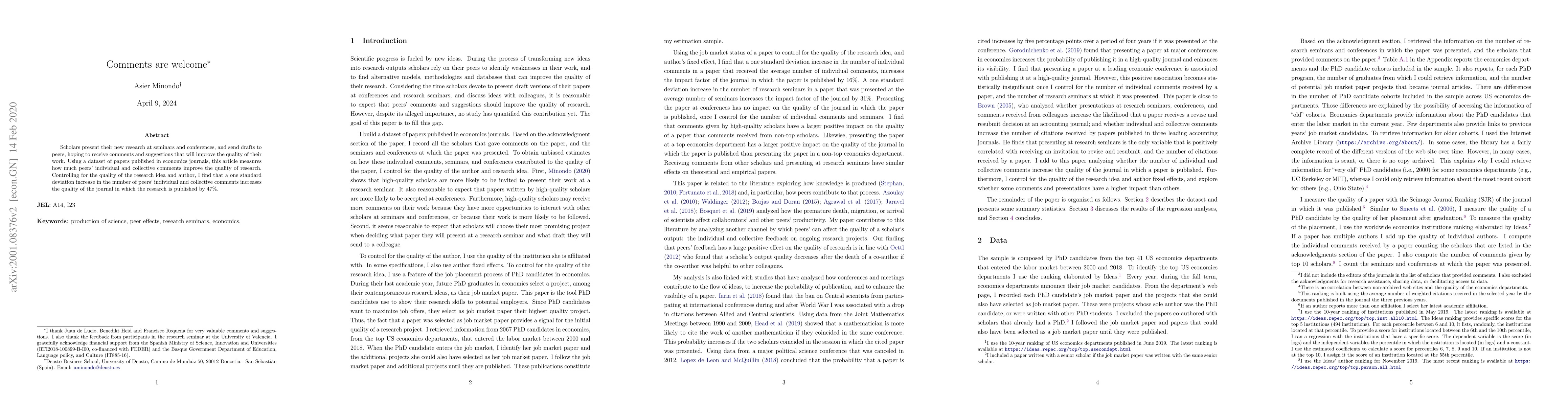 Scholars present their new research at seminars and conferences, and send drafts to peers, hoping to receive comments and suggestions that will improve the quality of their work. Using a dataset of papers published in economics journals, this article measures how much peers' individual and collective comments improve the quality of research. Controlling for the quality of the research idea and author, I find that a one standard deviation increase in the number of peers' individual and collective comments increases the quality of the journal in which the research is published by 47%.