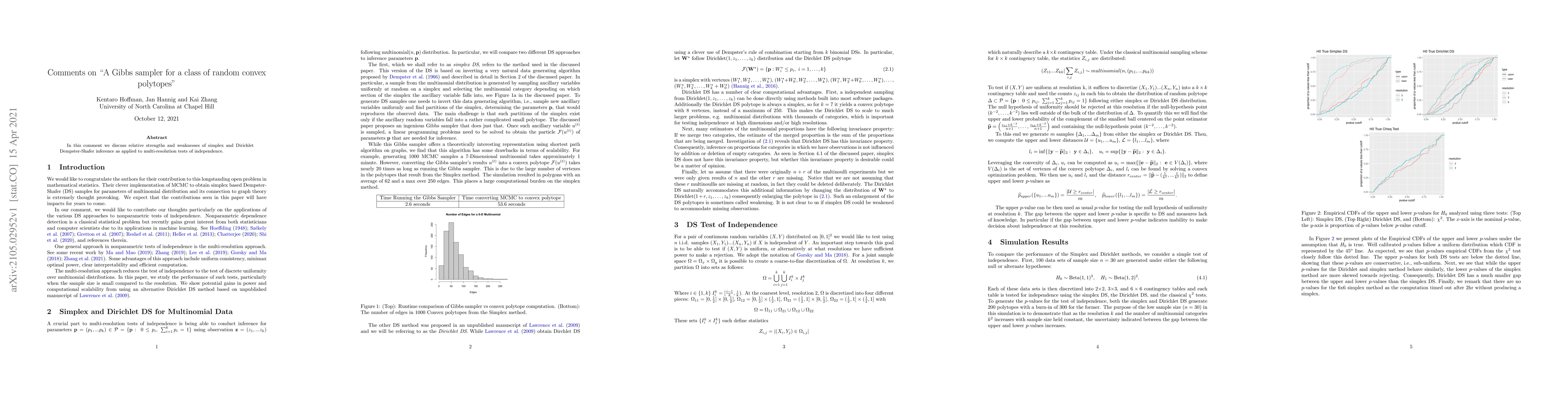 In this comment we discuss relative strengths and weaknesses of simplex and Dirichlet Dempster-Shafer inference as applied to multi-resolution tests of independence.