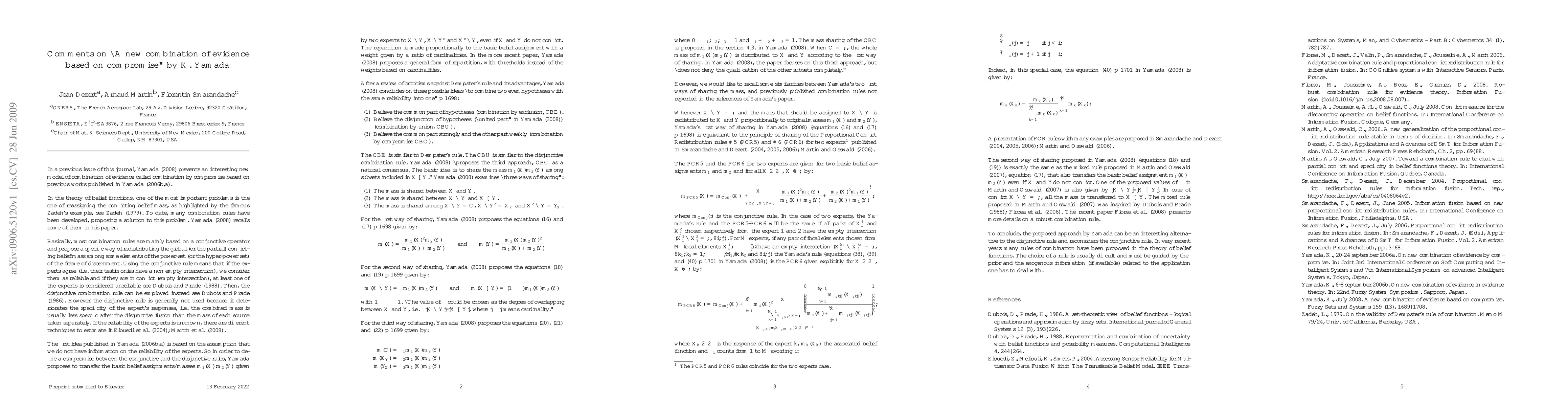 Comments on ``A new combination of evidence based on compromise'' by K. Yamada