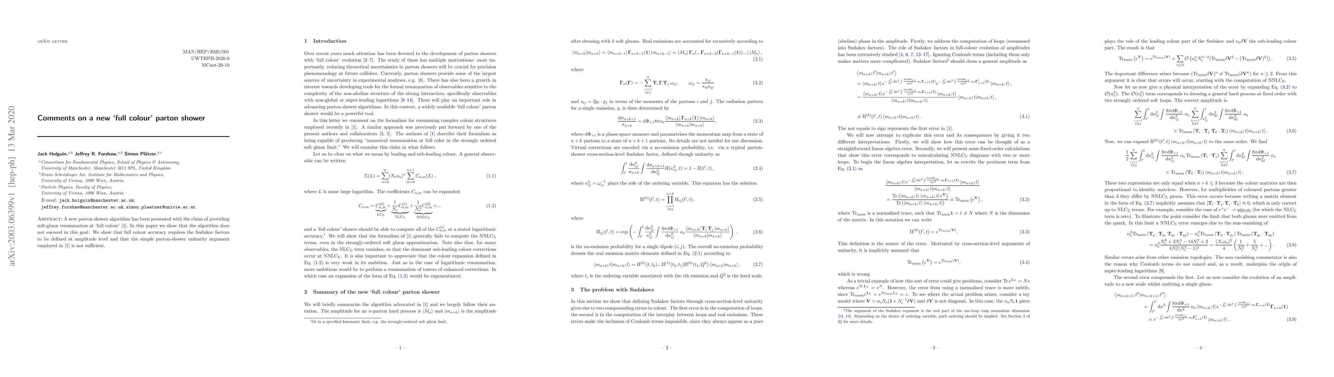 A new parton shower algorithm has been presented with the claim of providing soft-gluon resummation at `full colour' (arXiv:2001.11492). In this paper we show that the algorithm does not succeed in this goal. We show that full colour accuracy requires the Sudakov factors to be defined at amplitude level and that the simple parton-shower unitarity argument employed in arXiv:2001.11492 is not sufficient.