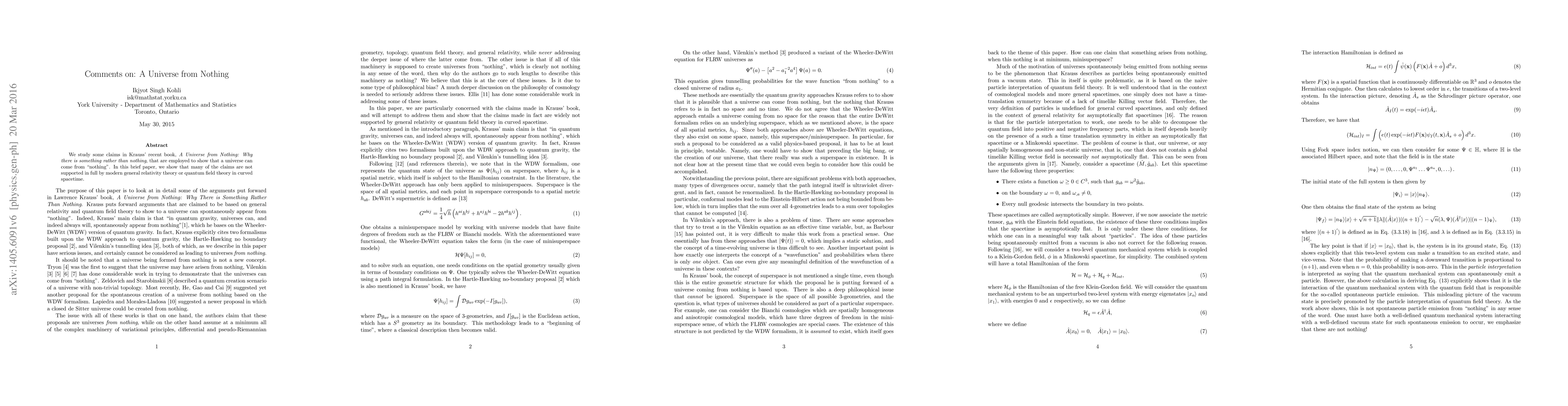 Summary: This paper critiques claims in Krauss' book "A Universe from Nothing," arguing that many assertions about a universe arising from "nothing" lack robust support from modern general relativity and quantum field theory in curved spacetime.