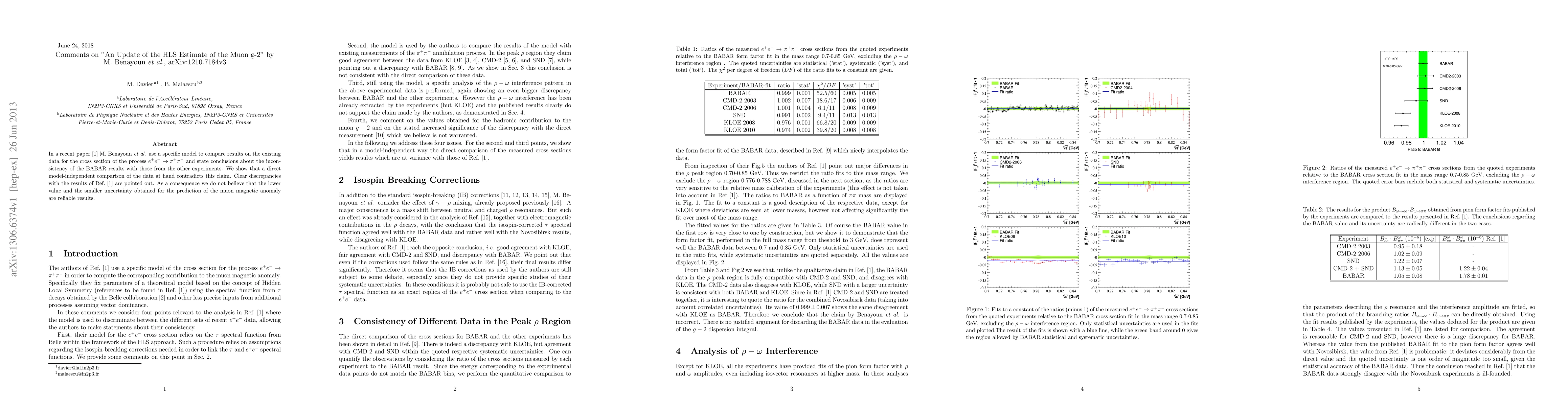 In a recent paper \cite{benayoun} M.Benayoun {\it et al.} use a specific model to compare results on the existing data for the cross section of the process $e^+e^-\rightarrow \pi^+\pi^-$ and state conclusions about the inconsistency of the BABAR results with those from the other experiments. We show that a direct model-independent comparison of the data at hand contradicts this claim. Clear discrepancies with the results of Ref. \cite{benayoun} are pointed out. As a consequence we do not believe that the lower value and the smaller uncertainty obtained for the prediction of the muon magnetic anomaly are reliable results.