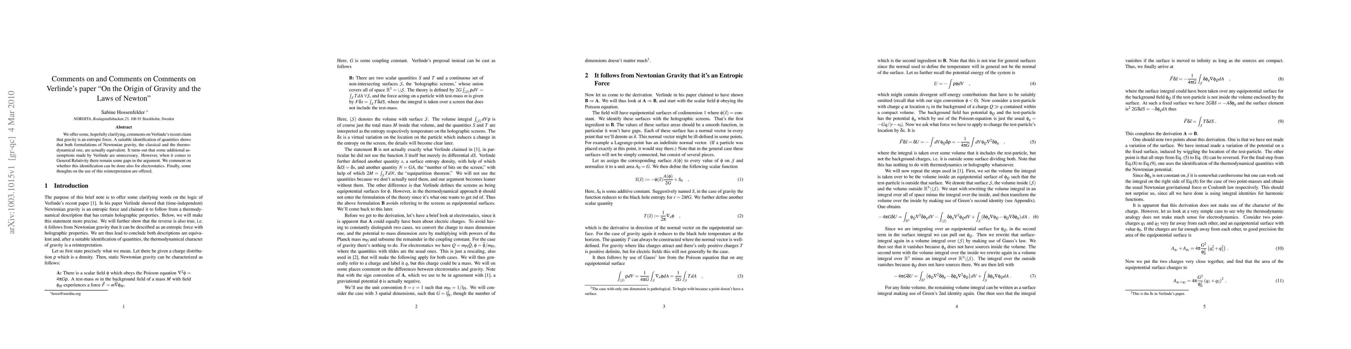 We offer some, hopefully clarifying, comments on Verlinde's recent claim that gravity is an entropic force. A suitable identification of quantities shows that both formulations of Newtonian gravity, the classical and the thermodynamical one, are actually equivalent. It turns out that some additional assumptions made by Verlinde are unnecessary. However, when it comes to General Relativity there remain some gaps in the argument. We comment on whether this identification can be done also for electrostatics. Finally, some thoughts on the use of this reinterpretation are offered.